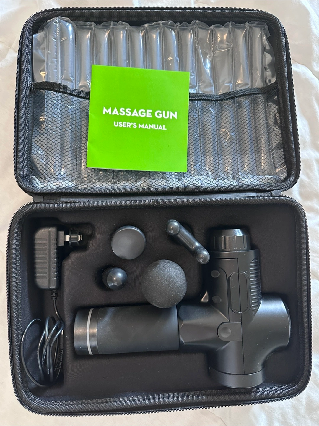 Selling a massage gun in great condition! It comes with its original case, charger, and various attachments for different massage needs. This is perfect for post-workout recovery or just relaxing those tense muscles after a long day.