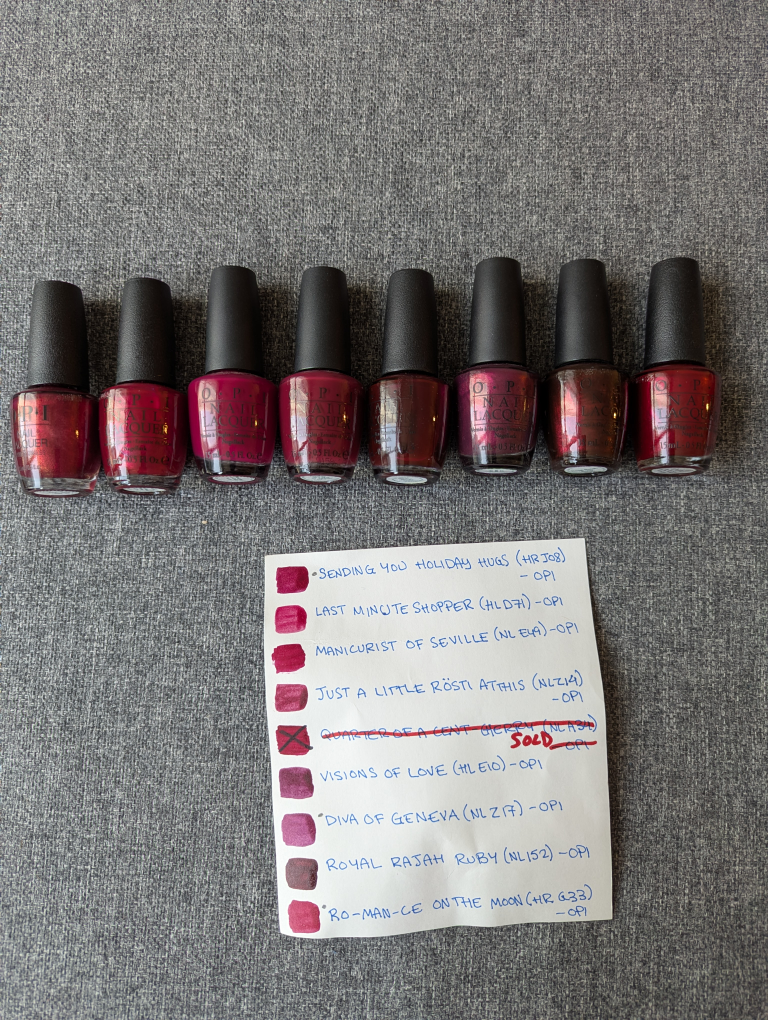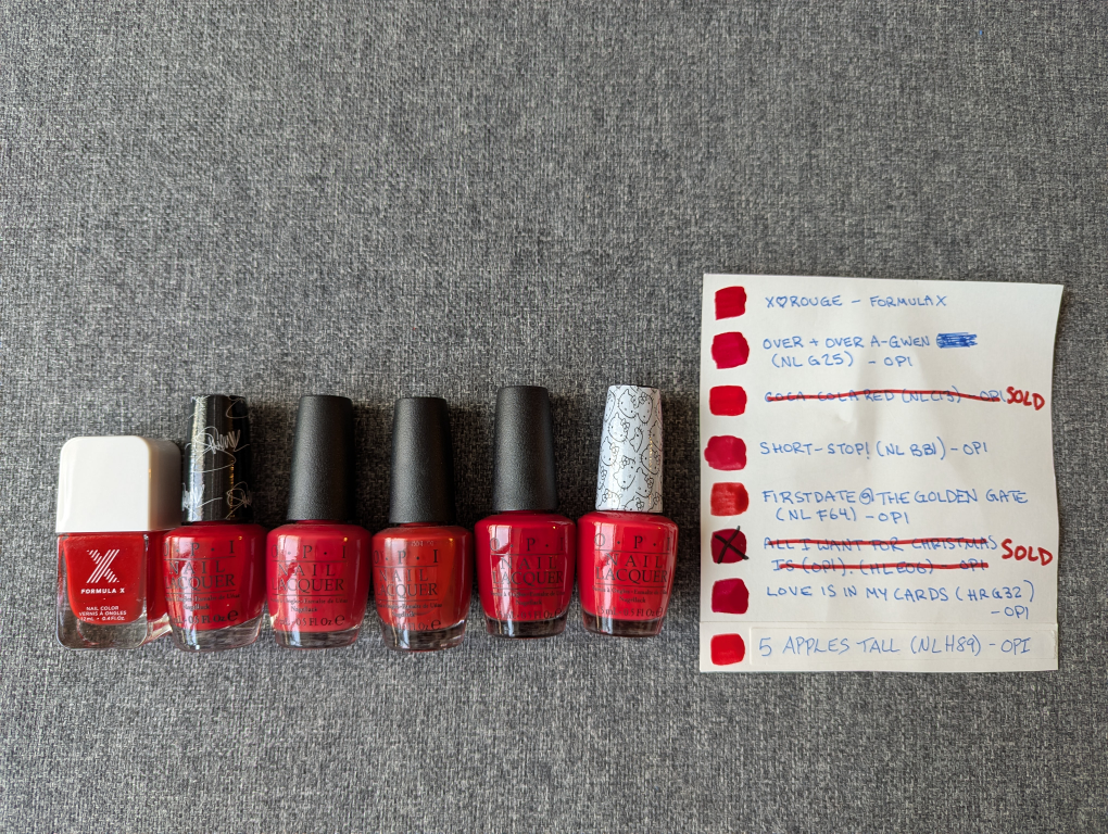 Nail Polish $5 each or $20 for 5 (Reds and Pinks)