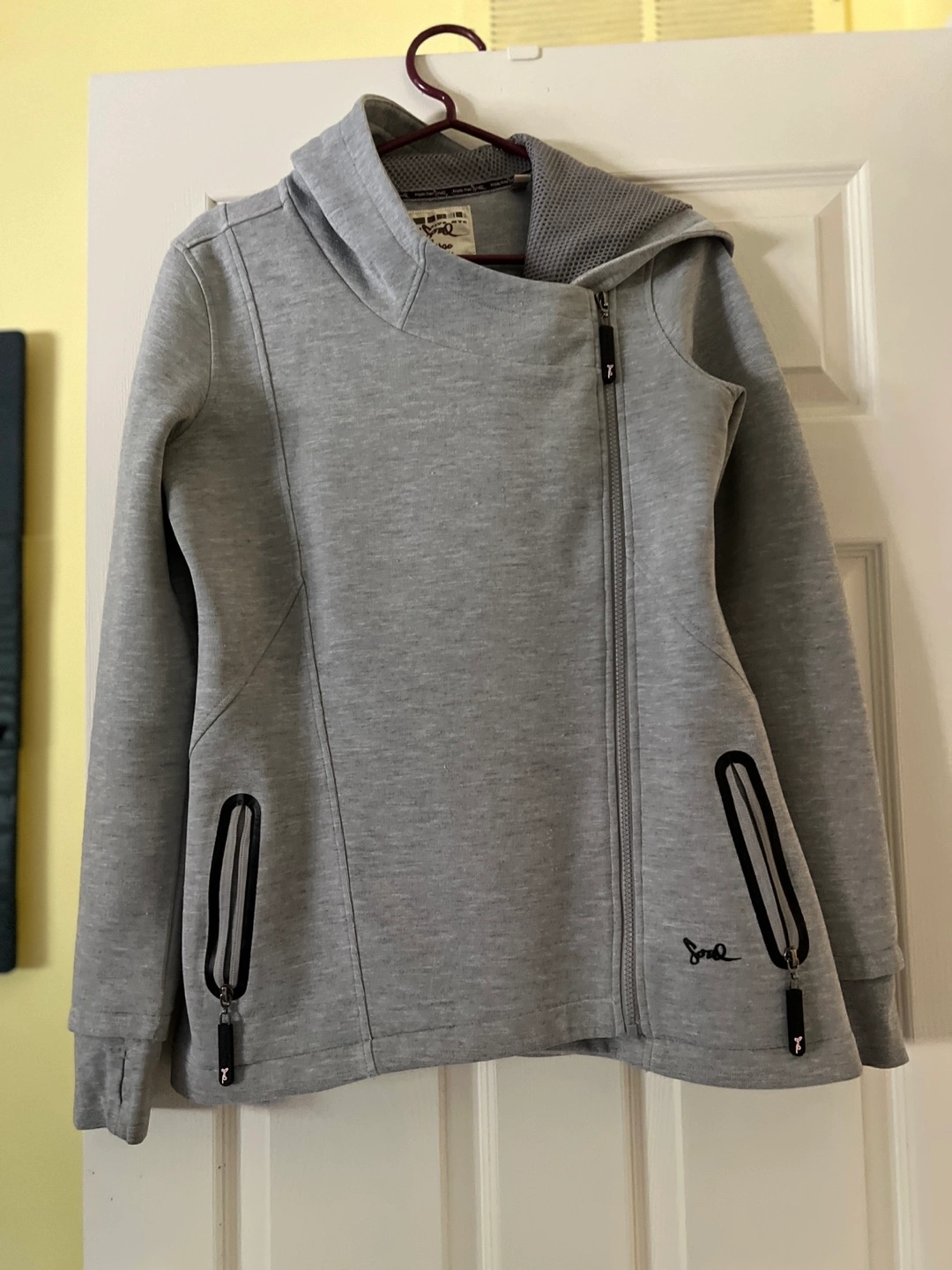 Cozy Triple Five Soul hoodie in a lovely grey colour! It's a size XL and in great condition. Features a unique asymmetrical zipper and thumb holes on the cuffs. Perfect for layering or wearing on its own!