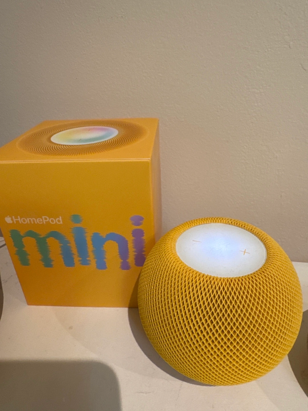 Selling a yellow Apple HomePod Mini! It comes with the original box. This smart speaker is in great condition and ready to find a new home. How poppin is this colour??