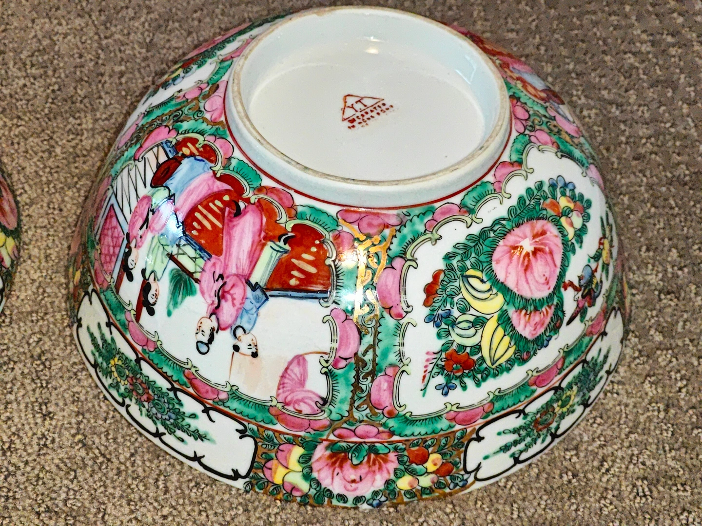 I am selling an Antique Chinese Asian China Rose Medallion Famille Porcelain Hand Painted Dinnerware Bowl Set in new condition. Never been used and no chips or cracks on any of the bowls. This stunning and rare 12-piece set of hand-painted porcelain bowls brings the timeless elegance of traditional Chinese artistry to your table. In pristine, new condition, these bowls have never been used and are free of any chips or cracks, preserving their original beauty.