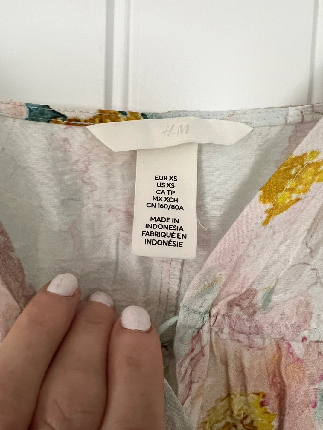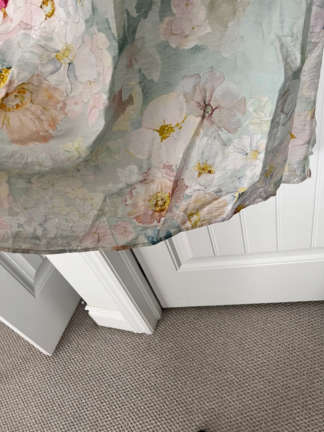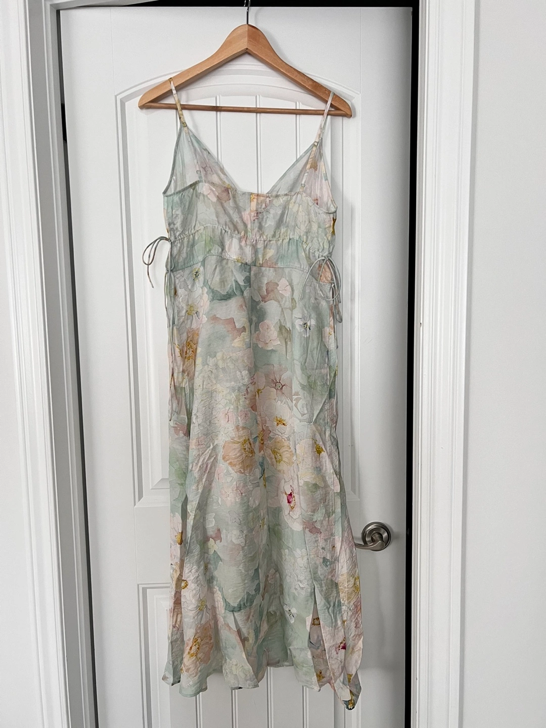 This is a beautiful floral print summery dress. Barely worn and in perfect condition. Size is xs but because of the adjustable strings at either side it can fit up to a medium.