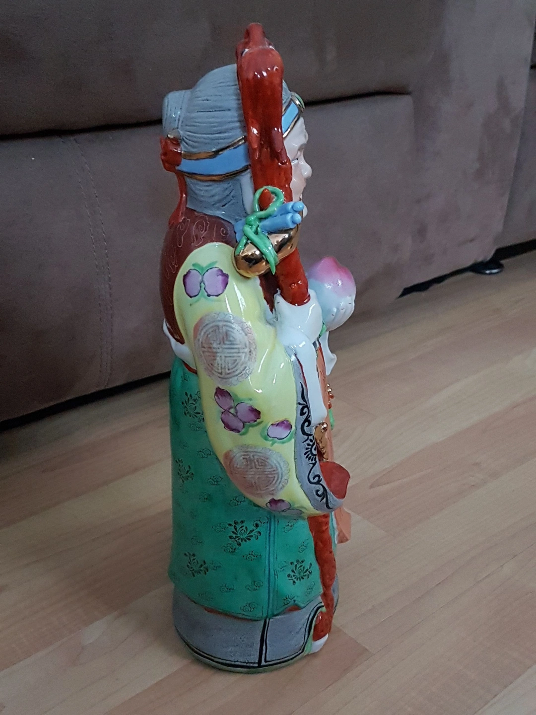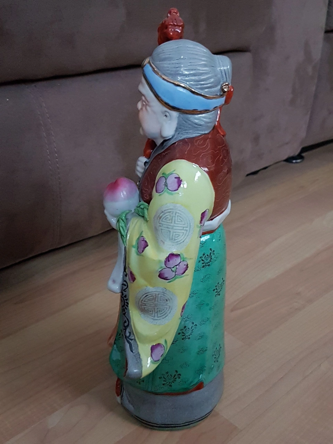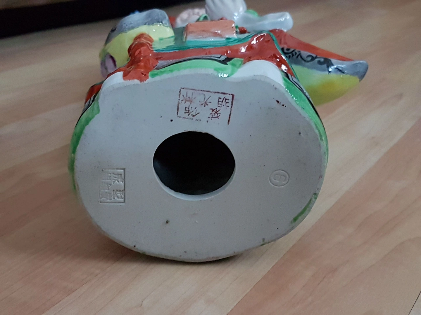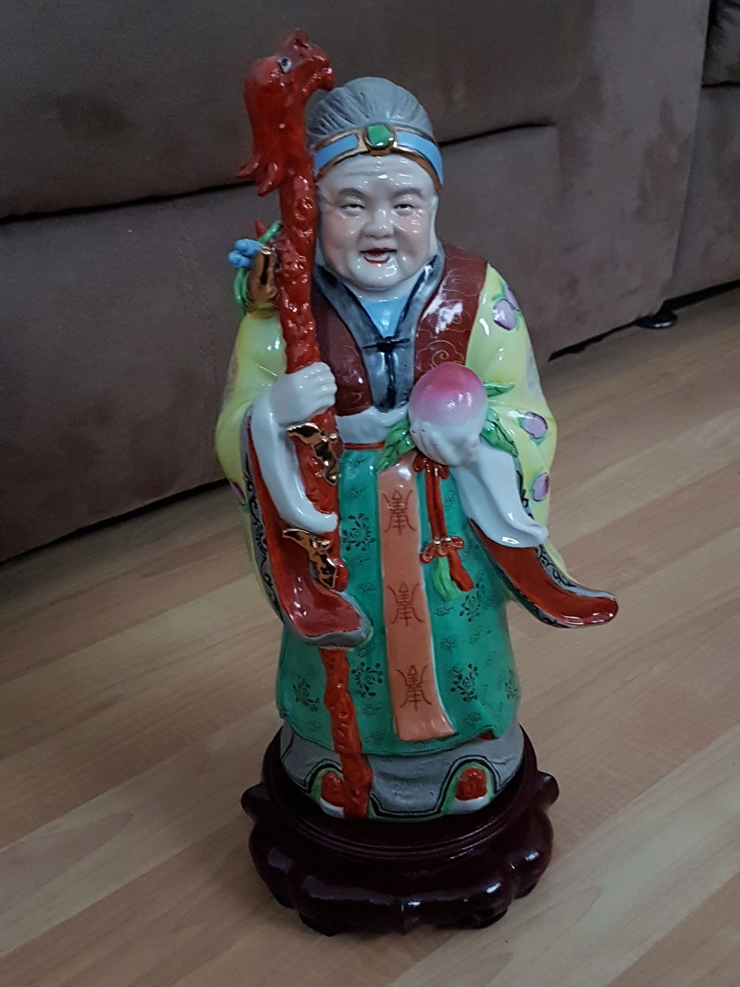 * Condition: This statue is in excellent condition, with no chips or cracks. The colors and glaze are well-preserved, showcasing the piece's history and quality. The wooden stand is also in great shape, adding to the overall value of the set.