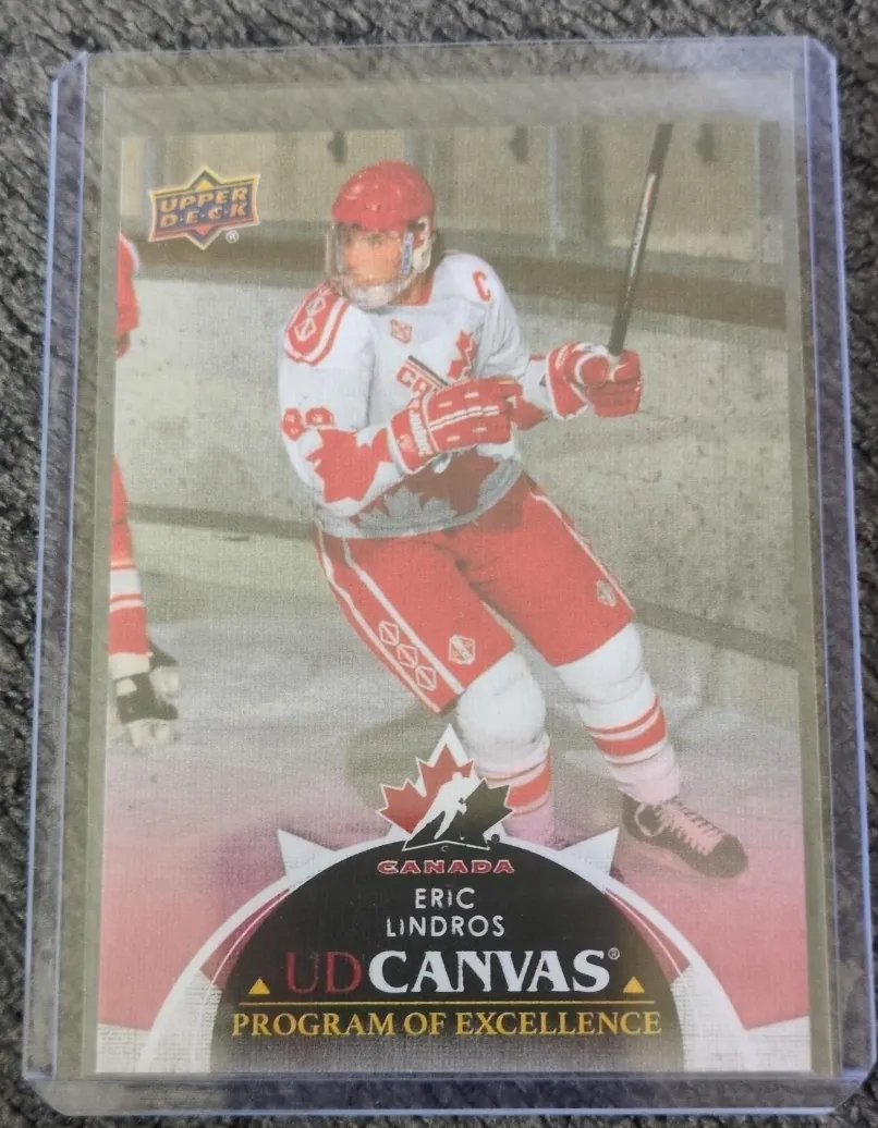 Selling an Eric Lindros hockey card from Upper Deck's UD Canvas series. A great addition to any hockey card collection!