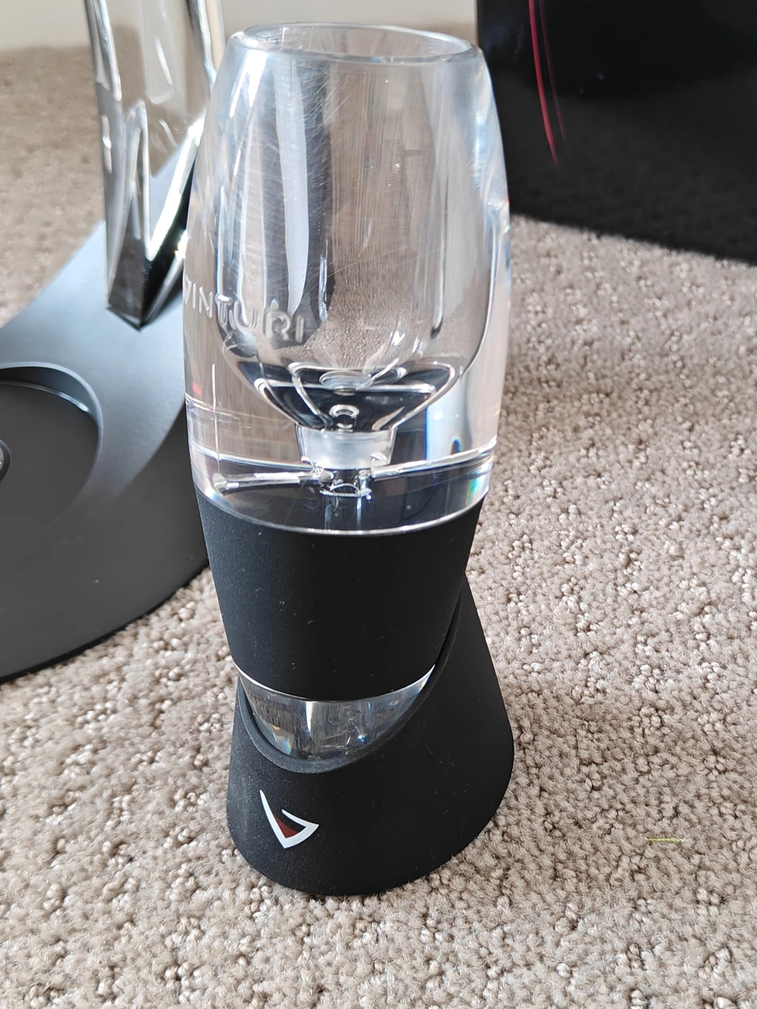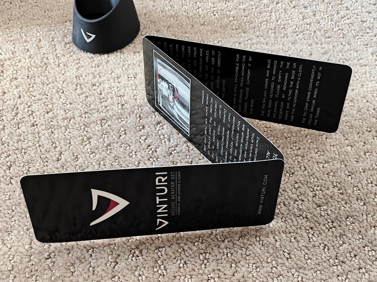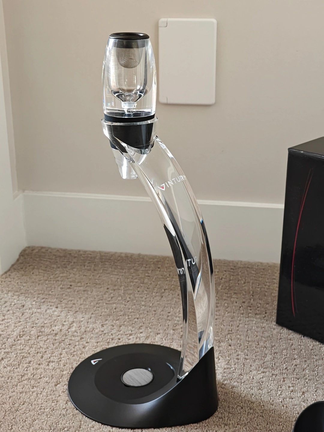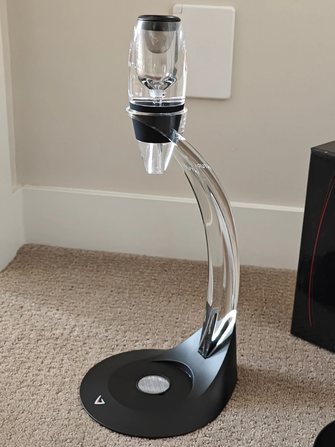 How it works: It is simple. Place a glass under the Vinturi Tower Set and pour wine through the opening. When wine is poured into the Vinturi, its internal patented design creates an increase in the wine’s velocity while simultaneously decreasing its pressure. This difference in pressure draws in the proper amount of air, which mixes with the wine for the right amount of time, and delivers a better bouquet, enhanced flavors, and a smoother finish - the absolute perfect aeration.