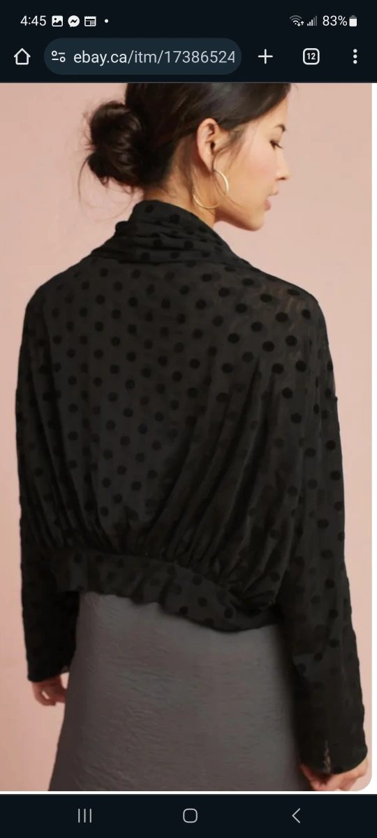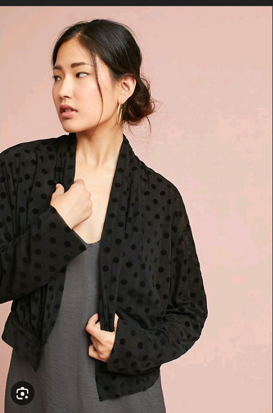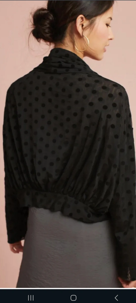 Anthropologie by Ett:twa Lawrencw polka dot velvet jacket. Black with black polka dots. Like new.