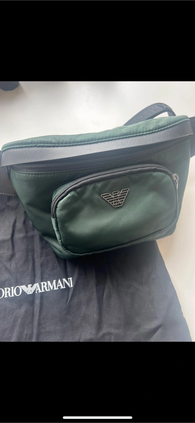 Selling a stylish Emporio Armani belt bag in a lovely green colour! It's in great condition and comes with its original dust bag. Perfect for keeping your essentials close and adding a touch of luxury to your outfit. Unisex