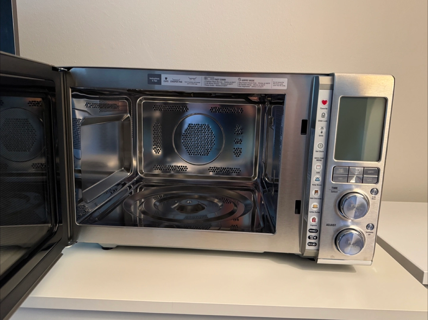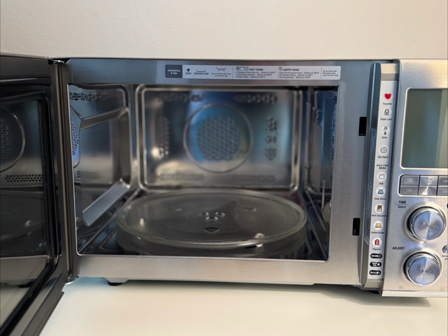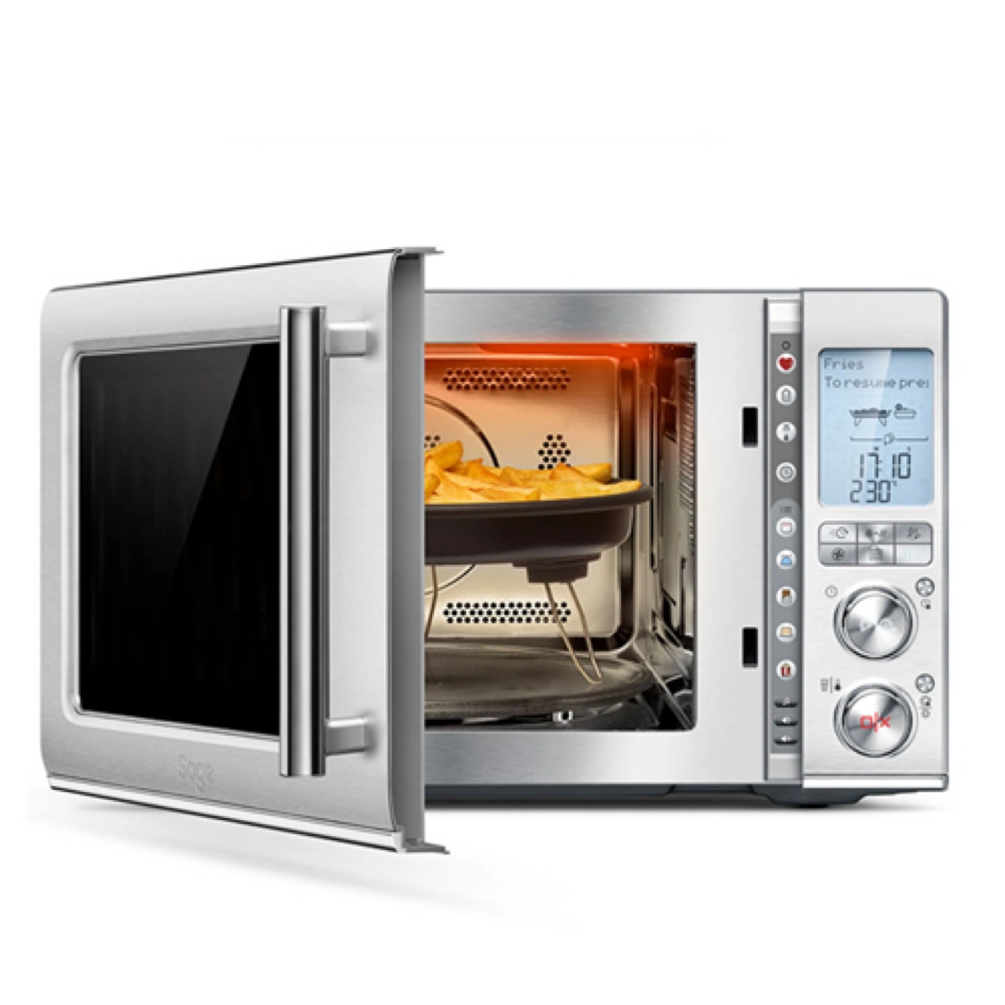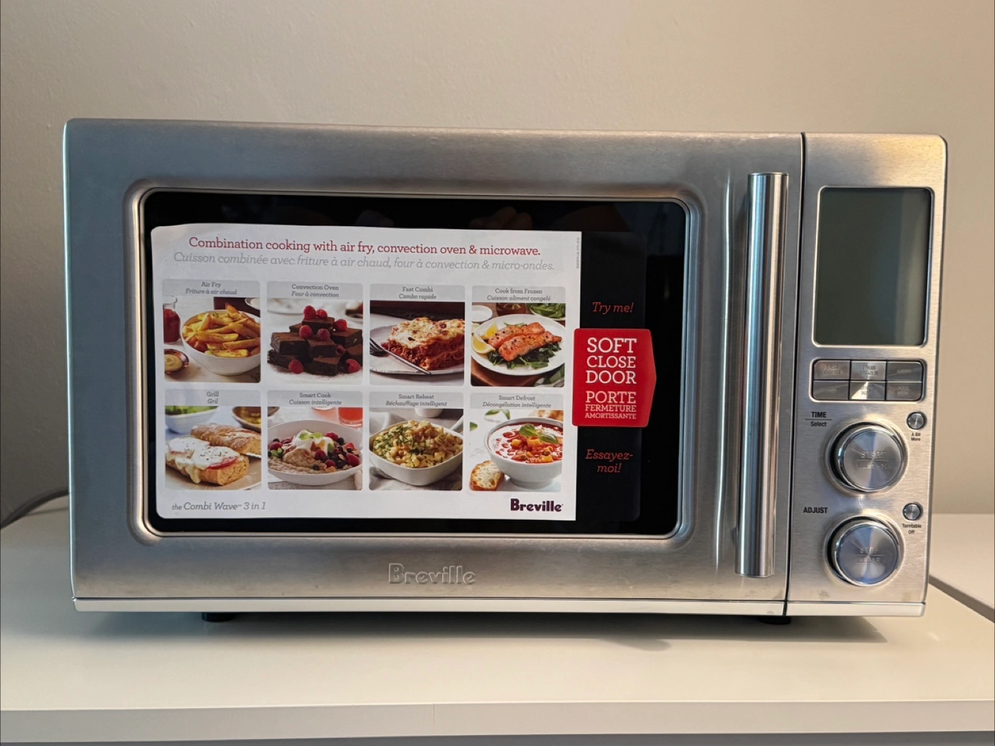 Breville Combi Wave 3 in 1 combines air fry, convection oven, and microwave! It features a soft close door and combination cooking. Perfect for fries, pizza, or leftovers.