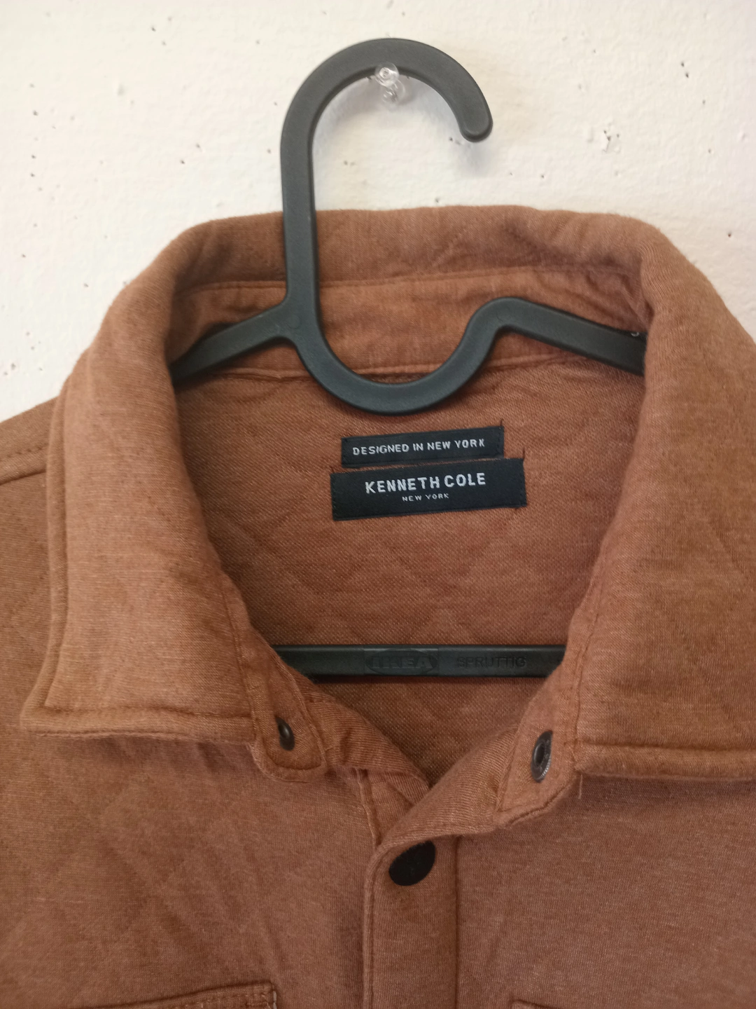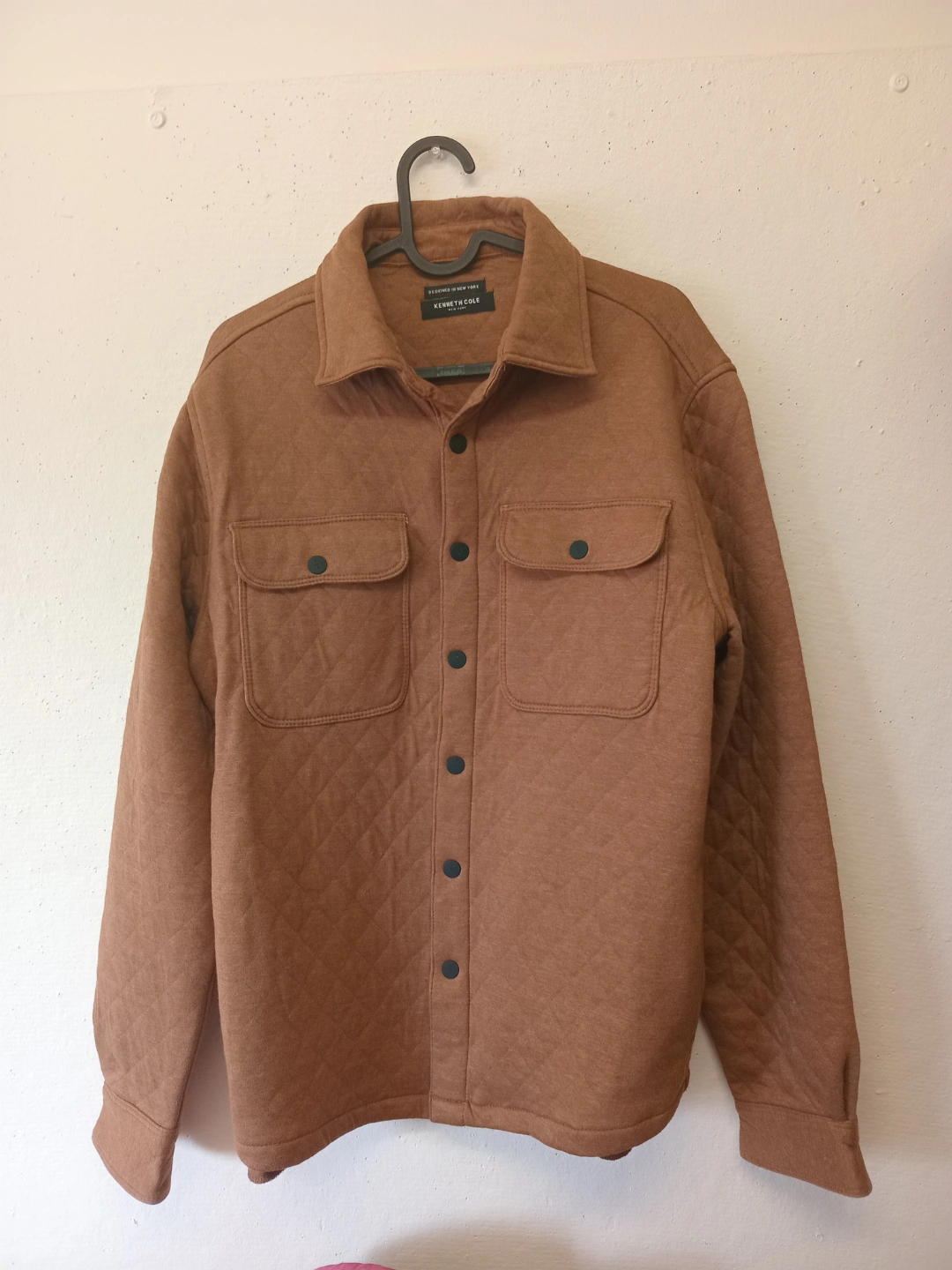Cozy Kenneth Cole New York quilted shirt jacket in a nice brown colour. Perfect for layering during the cooler months. It's in great condition and ready for a new home