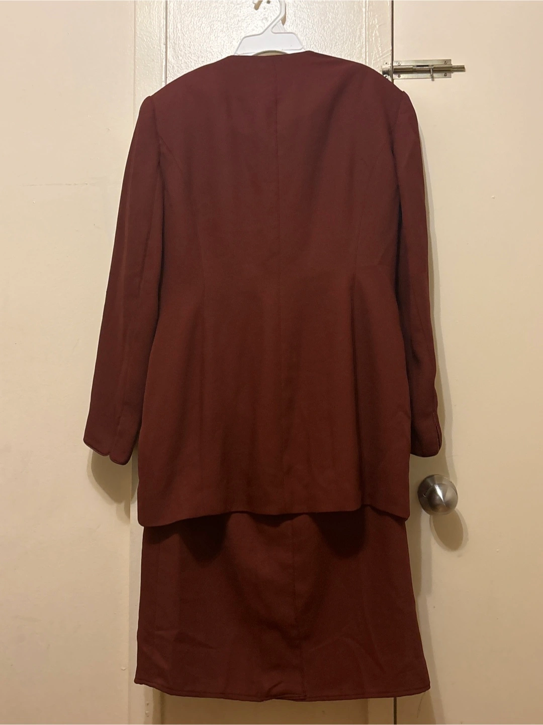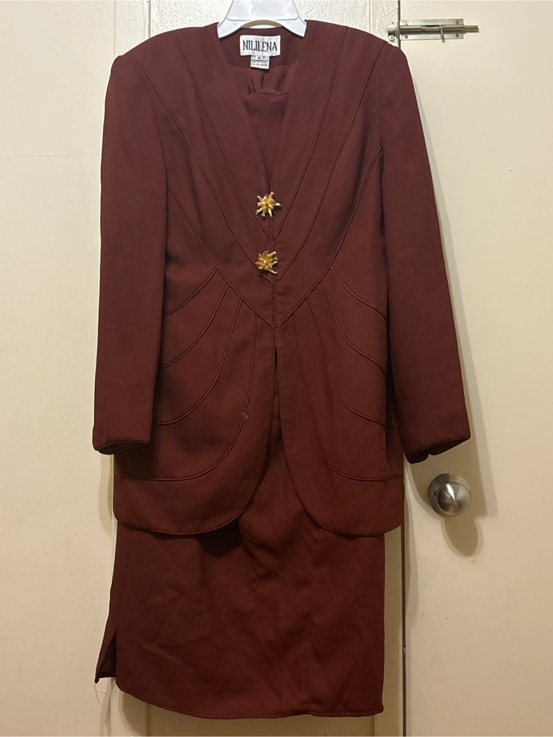 47Selling a NILILENA skirt set containing a blouse in a lovely burgundy colour, and a skirt long skirt that comes with it. The size is 44. It's a stylish and classic piece for any wardrobe!