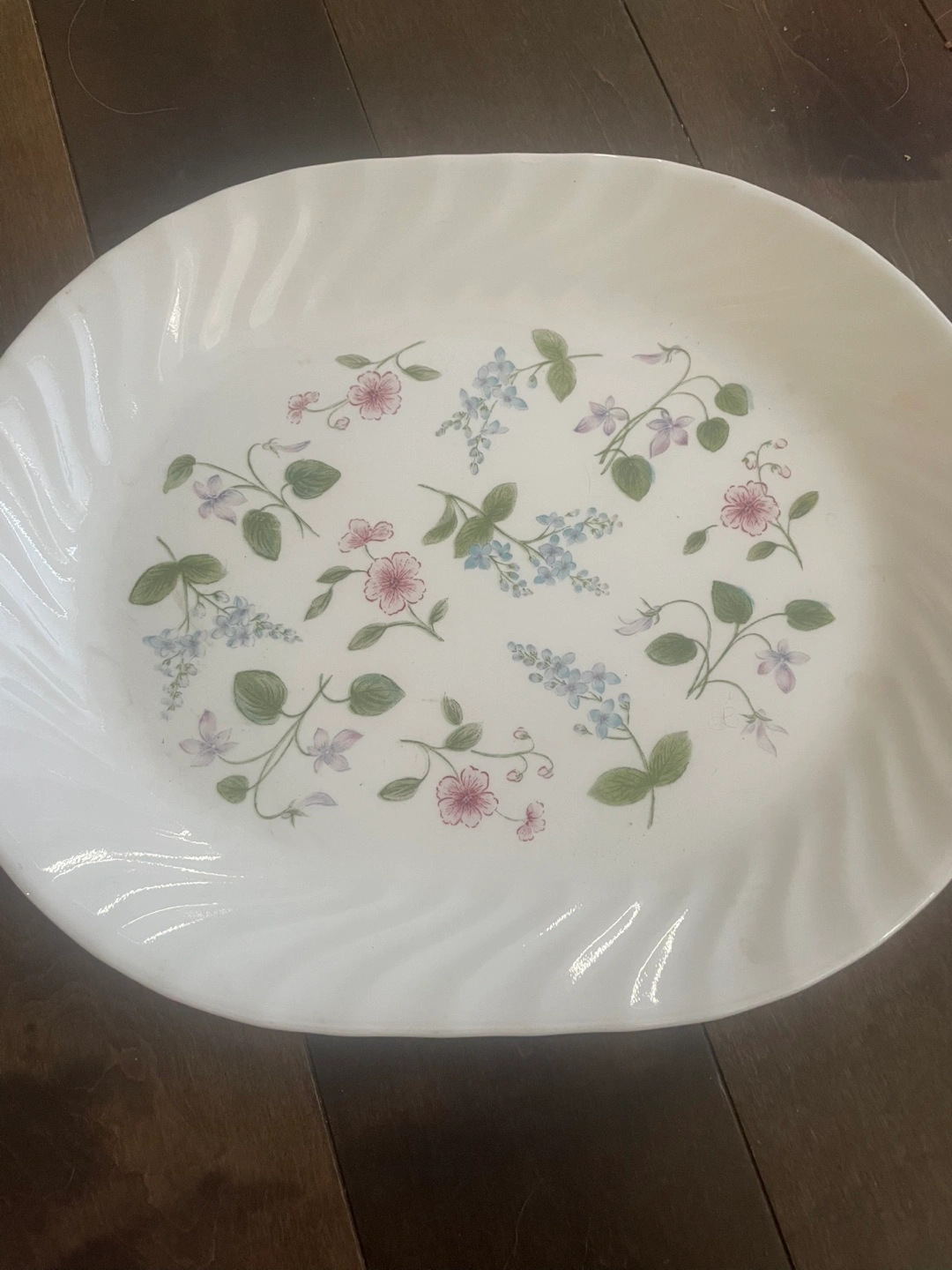 Selling a Corelle platter featuring a lovely floral design! It's in great shape and ready to brighten up your table. This platter is break and chip resistant, and made in the USA! Pick up in Chappelle . Asking $15.