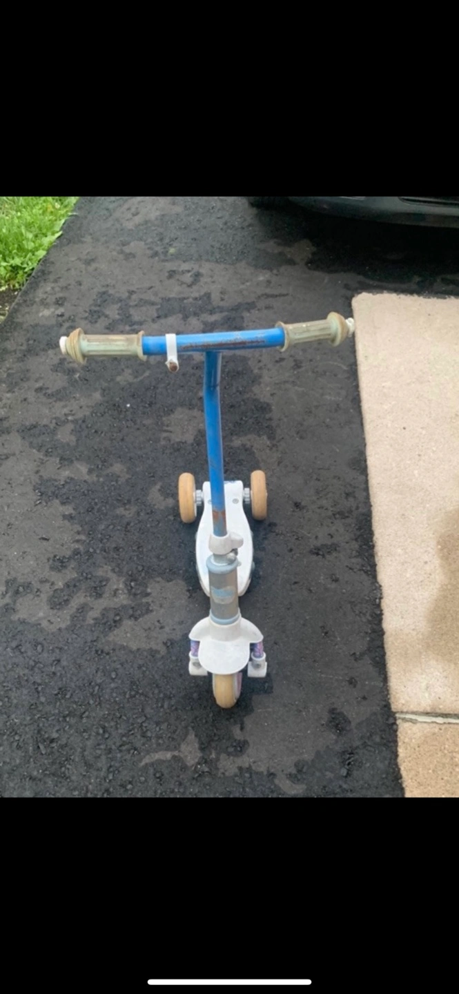 Three wheels makes sure they dont fall. The 3 wheels will always keep the scooter and bike standing up and keeping them safe from falling down