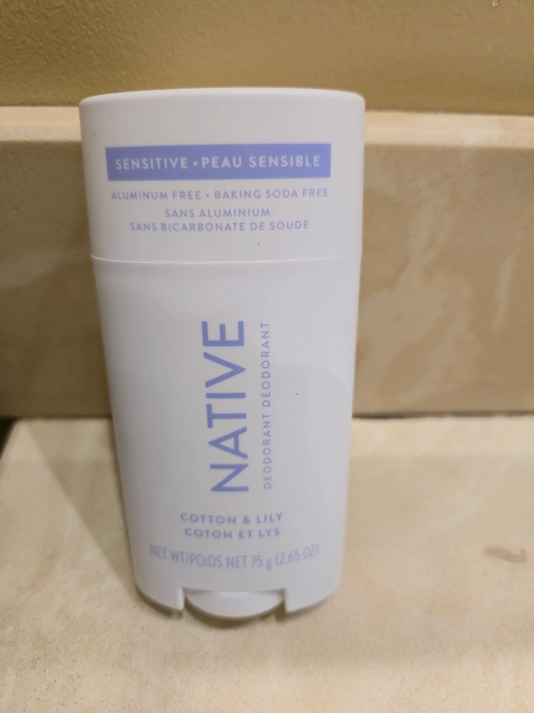 Selling a Native deodorant in the Cotton & Lily scent. It's designed for sensitive skin and is aluminum and baking soda free. Net weight is 75g (2.65 oz)