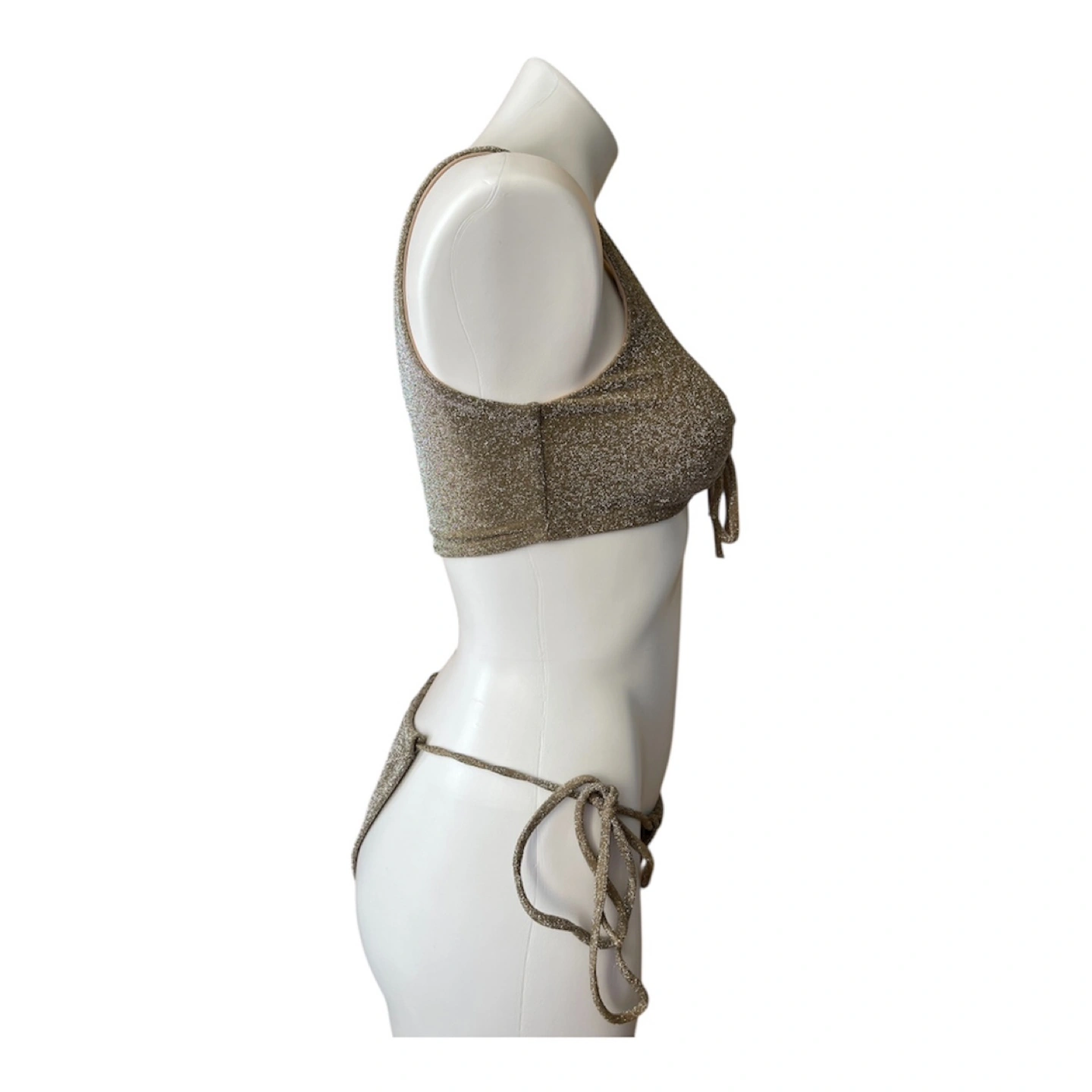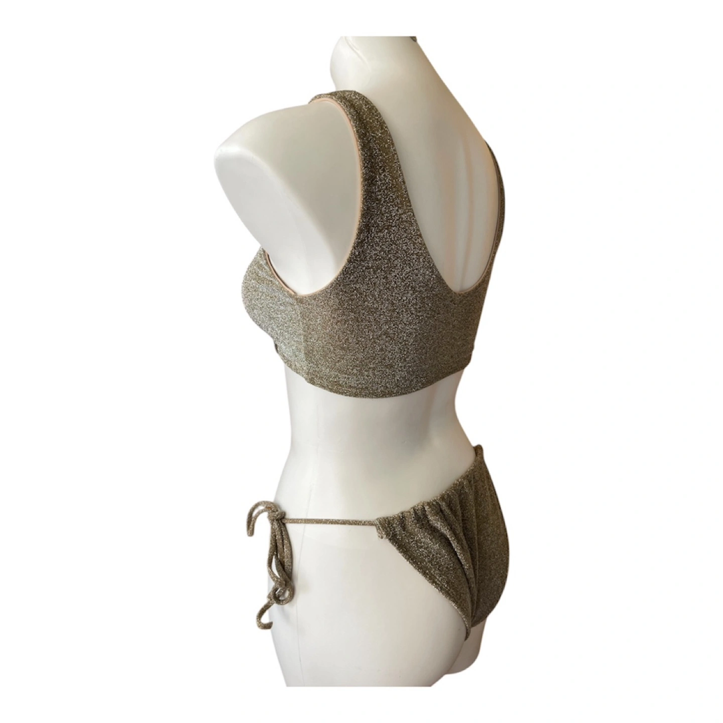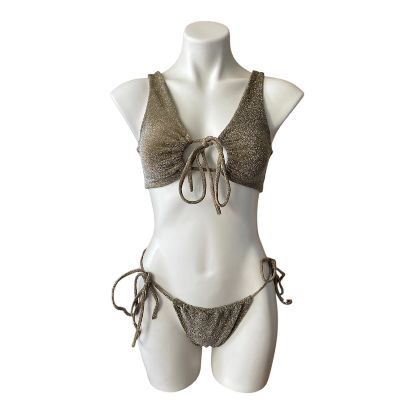 NWT RARE Vintage 2000s Y2K Bikini Set Halter Top Brazilian String Bottoms Glitter Gold Medium