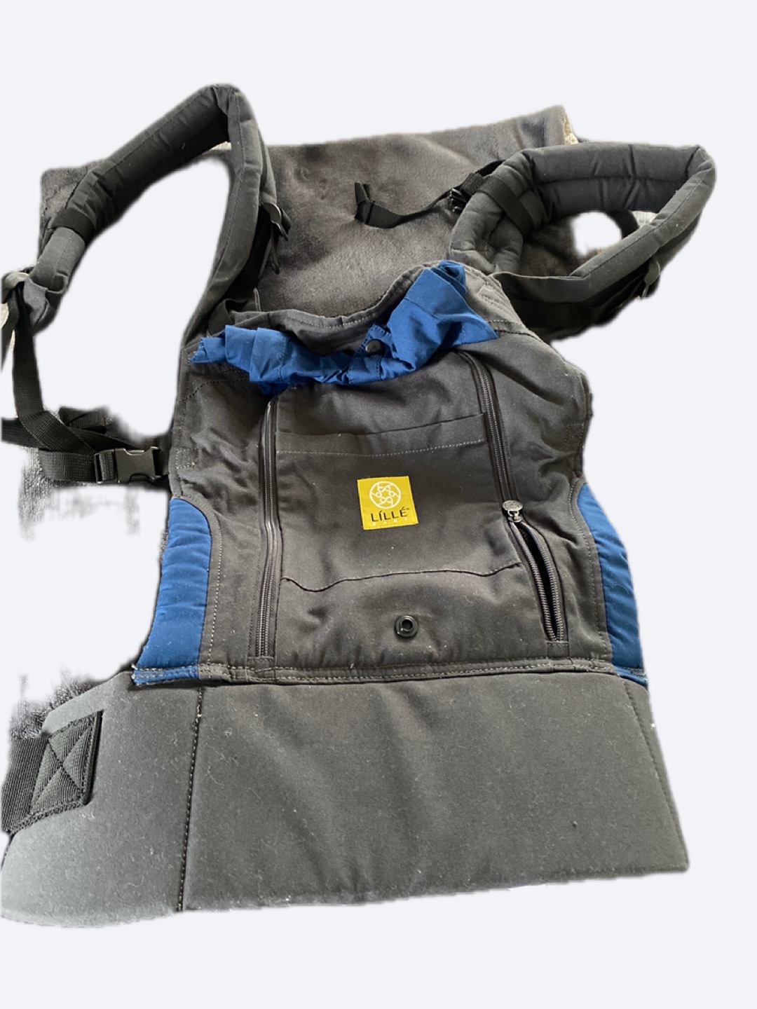 Selling a LILLEbaby baby carrier in black and blue. It's in great shape and ready for a new little one! Includes instruction book. Perfect for keeping your baby close and comfortable while you're on the go