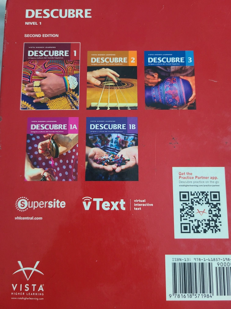 Descubre 1, a language and culture textbook. It's part of the Vista Higher Learning series. Great for learning Spanish!