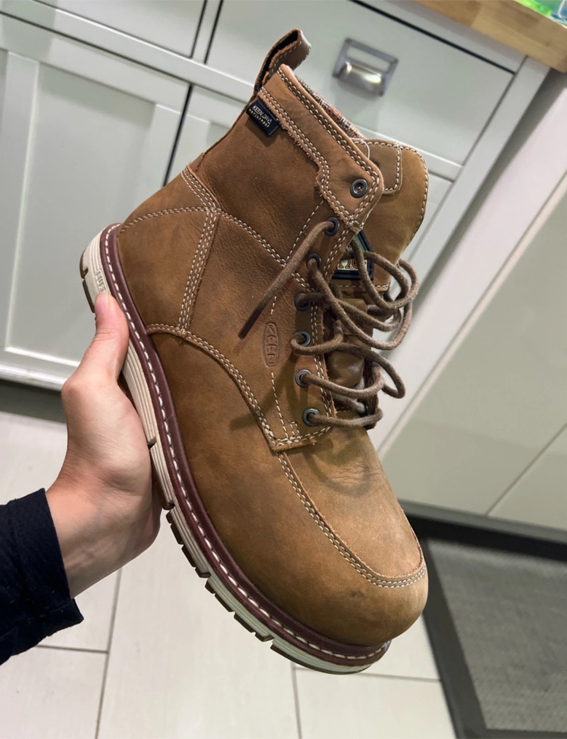 Selling a pair of KEEN waterproof leather boots. They're in great shape and ready for any weather! The boots are a stylish brown leather, perfect for everyday wear or outdoor adventures