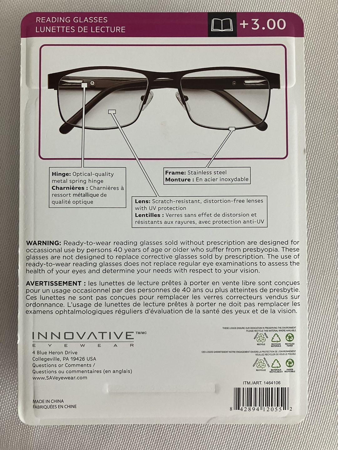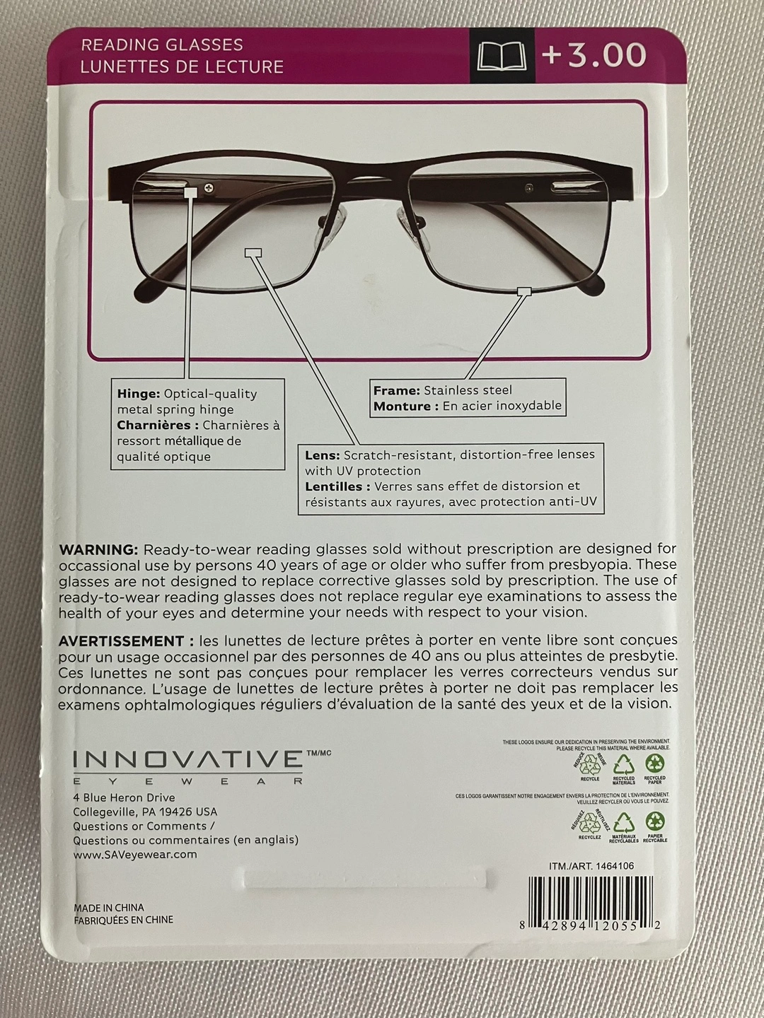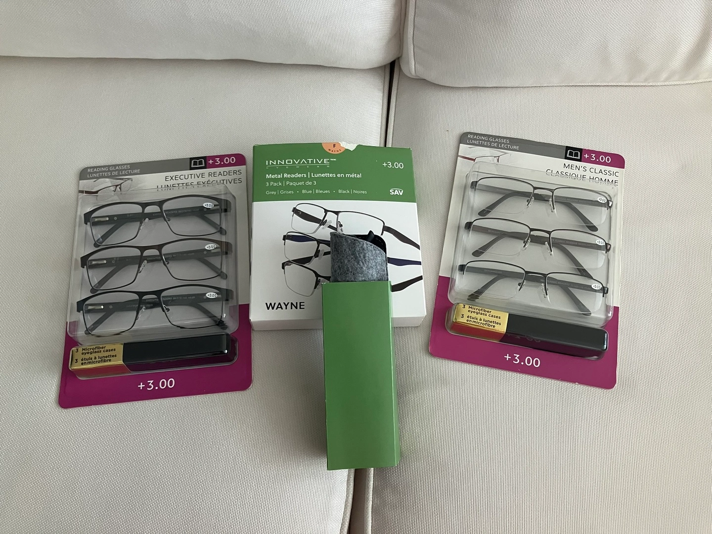 NEW 7 pair +3.00 Reading Glasses 3-Pack