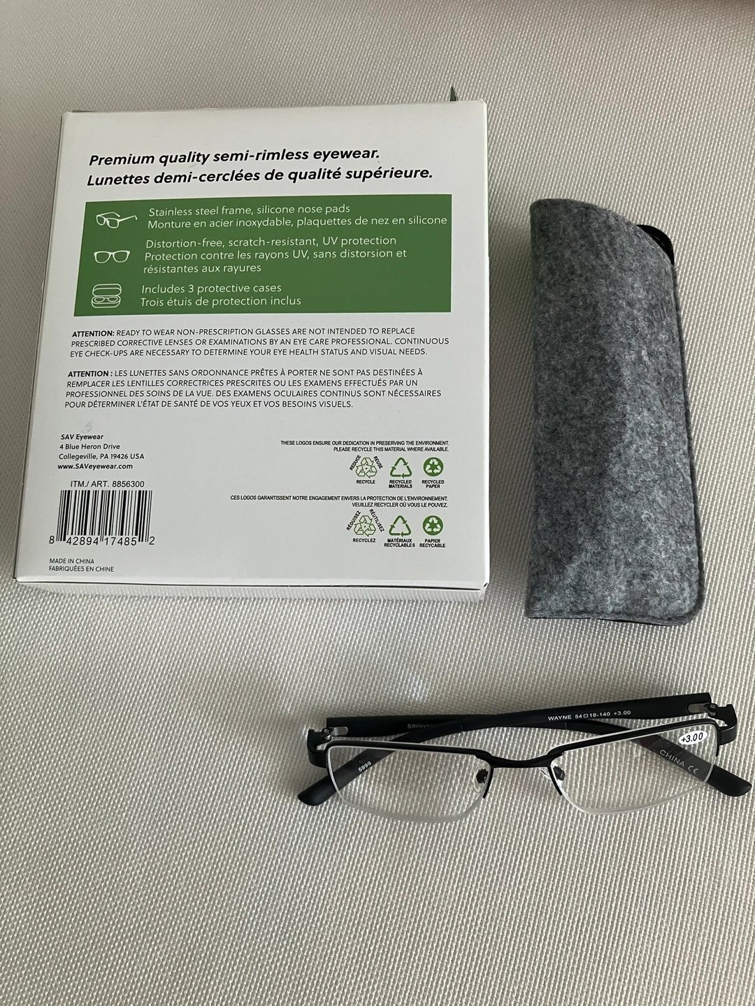 One new never used black pair “Wayne” +3.00 readers 1 grey felt glasses case