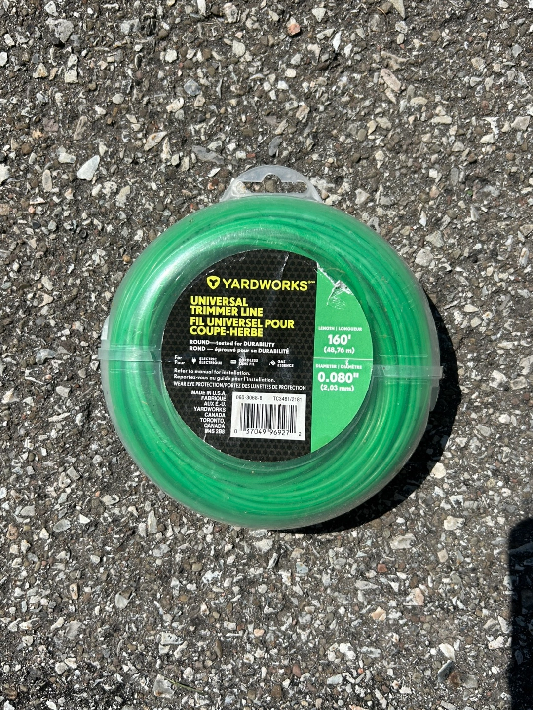 Selling a Yardworks Universal Trimmer Line, perfect for keeping your yard tidy! It's 160 feet long and 0.080" in diameter, so it's durable and ready for various trimming tasks. Brand new!