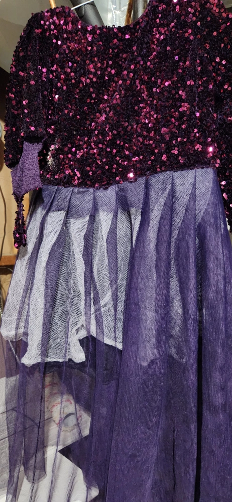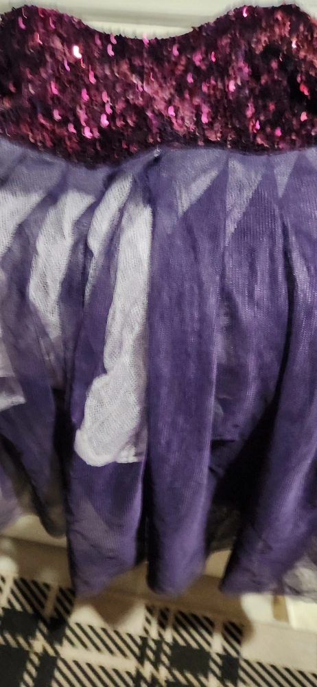 Selling a cute dress with a sequin top and tulle skirt! The top is a dark purple with sequins, and the skirt is various shades of purple tulle. Great for parties or special occasions