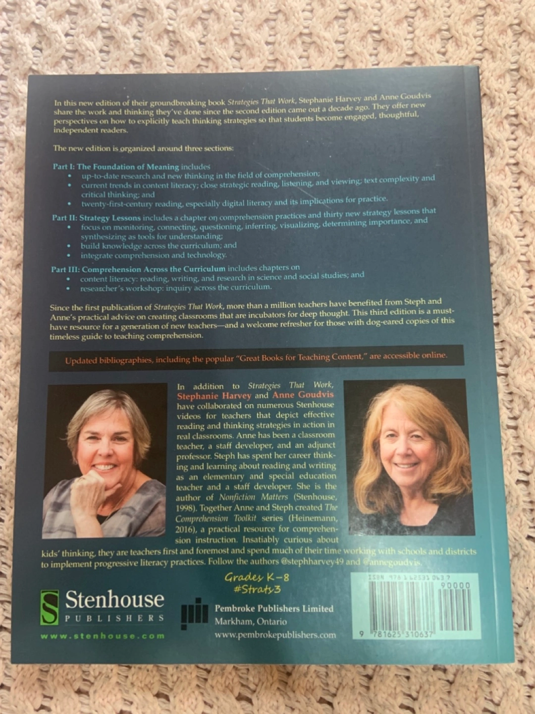 96• MINT CONDITION • NO WRITING•BENDS•HIGHLIGHTING • ‘ STRATEGIES THAT WORK ‘ • THIRD EDITION • Teaching Comprehension for Understanding l, Engagemnet, and Building knowledge • GRADES K-8 • STEPHANIE HARVEY • ANNE GOUDVIS • $12 • MAIN INTERSECTIONS ARW HURONTARIO•STEELES JUST BEFORE DOWNTOWN BRAMPTON