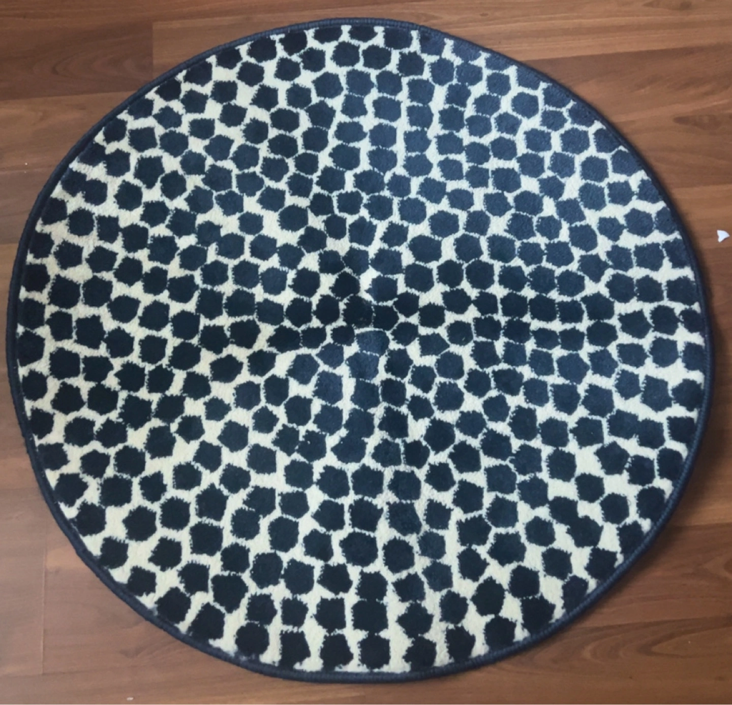 847I am selling a gently used round area rug! It features a unique black and white pattern that would add a nice touch to any room. If interested message me.