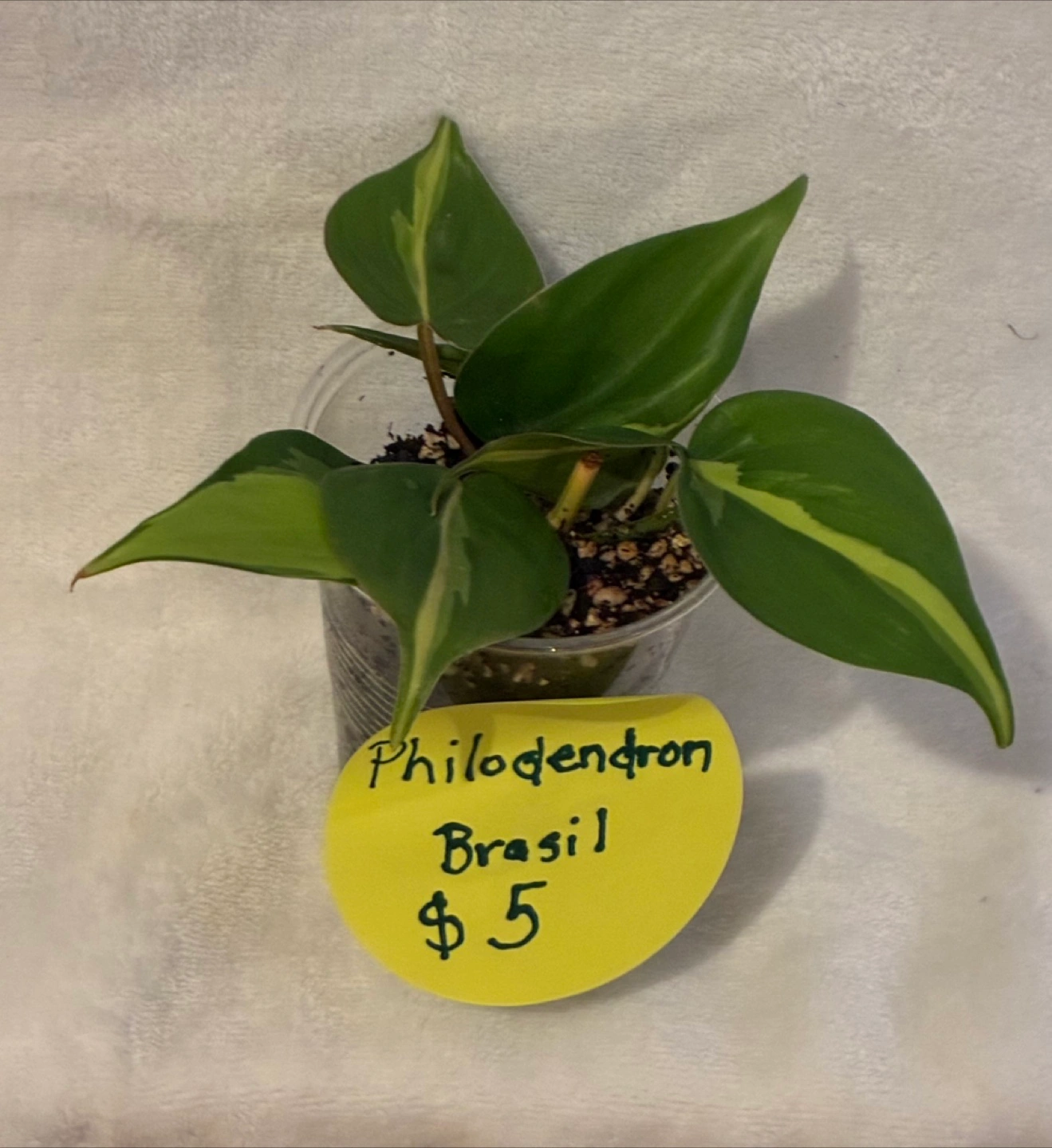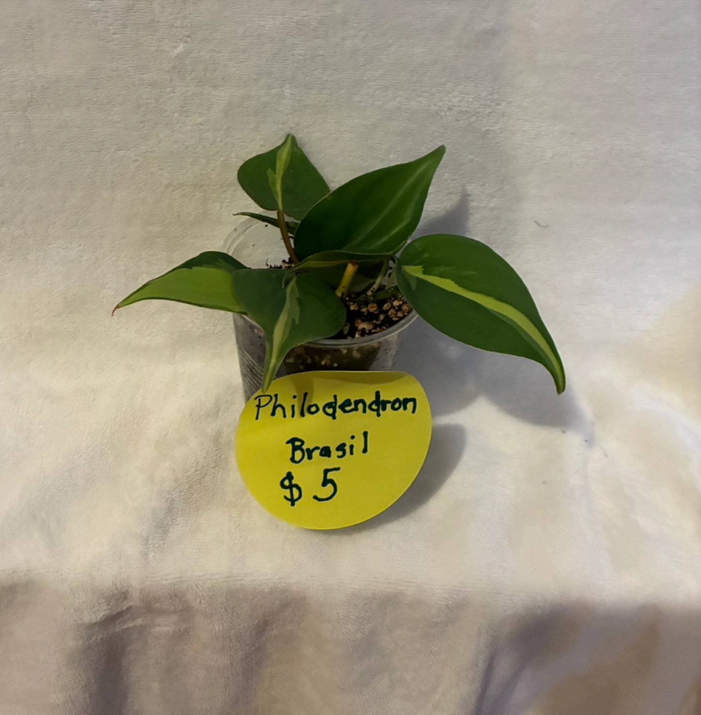 Selling a healthy Philodendron Brasil plant! The leaves have a beautiful variegated pattern of green and yellow. It's a low-maintenance plant, perfect for adding some greenery to your home