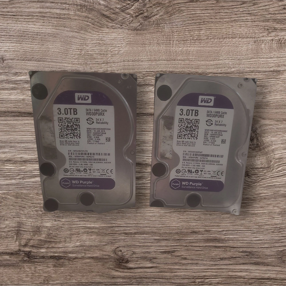 15Two WD Purple 3TB surveillance hard drives for sale. $100 / each - SATA / 64MB Cache - Model: WD30PURX - Designed for 24/7 reliability - Manufacturing Date: 2015 January 15