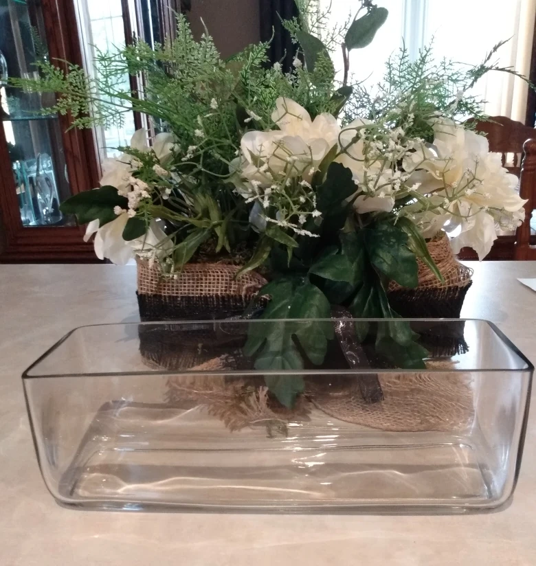 Selling clear glass rectangular vase. It's perfect for a beautiful centrepiece for your table. It's in great condition and ready to add a touch of elegance to your home . $5 (Cash pick up)