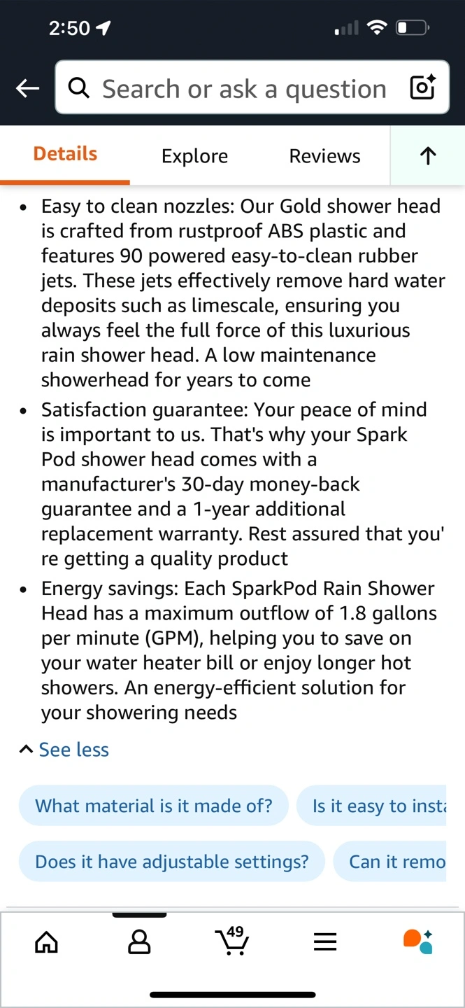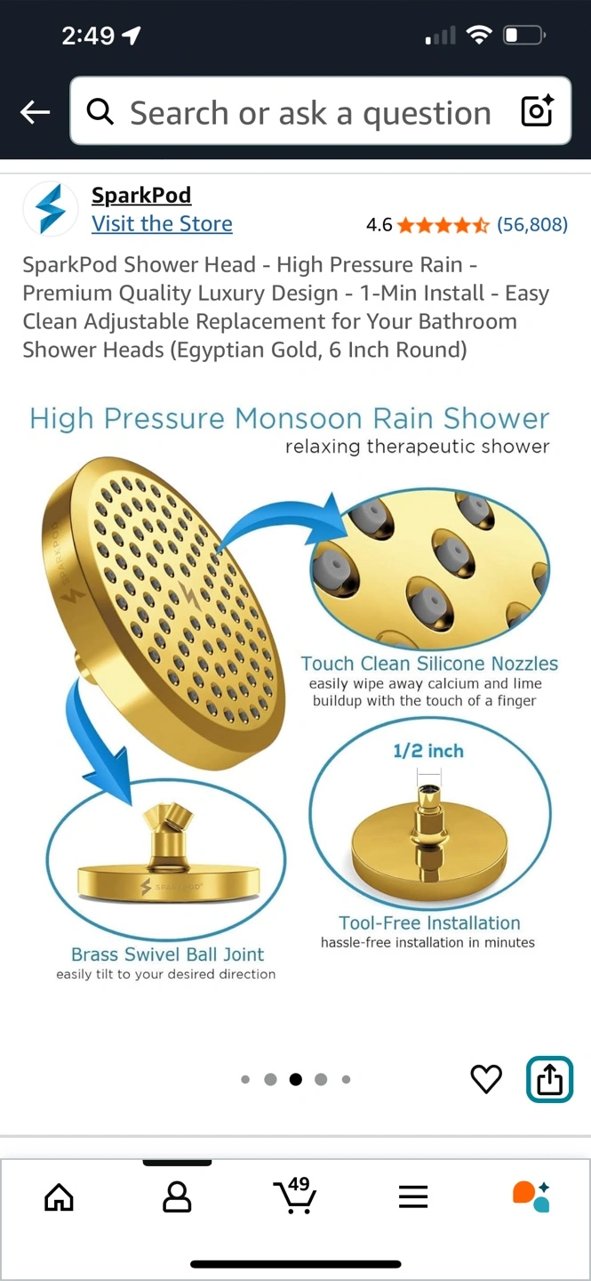 Looking to upgrade your shower experience? I'm selling a SparkPod 6" Luxury Rainfall Shower Head in Egyptian Gold!