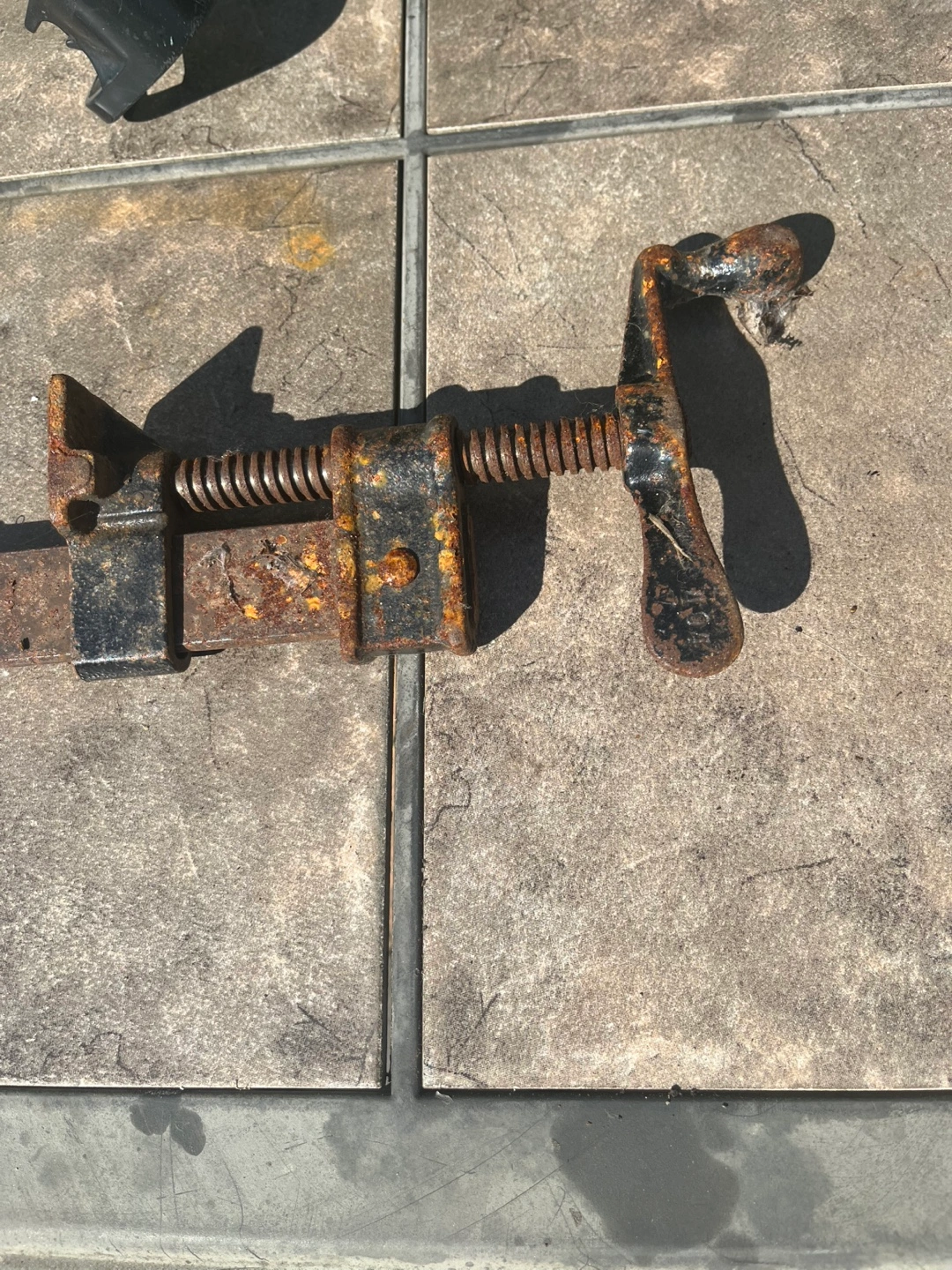 Selling a vintage bar clamp. As you can see from the photos, it has some wear and rust, but it is still functional. Great for woodworking or other projects!
