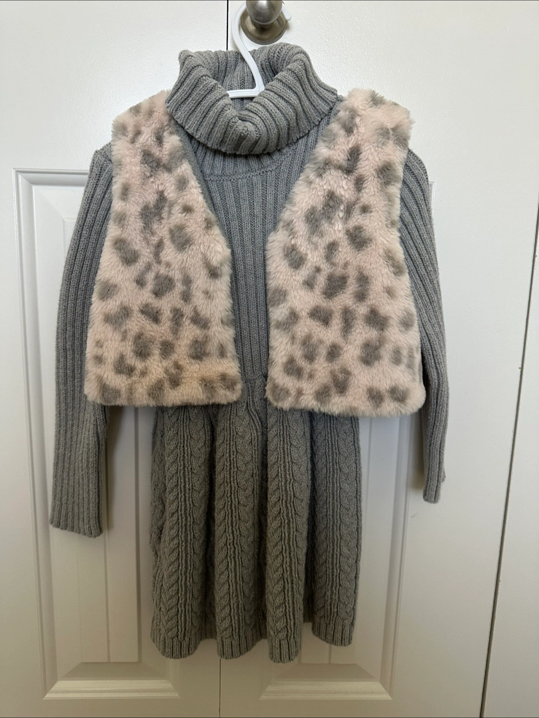 A cute and stylish Rachel Zoe dress with a faux fur vest! This dress is size 3T and features a lovely gray colour. Perfect for your little one to stay warm and fashionable.