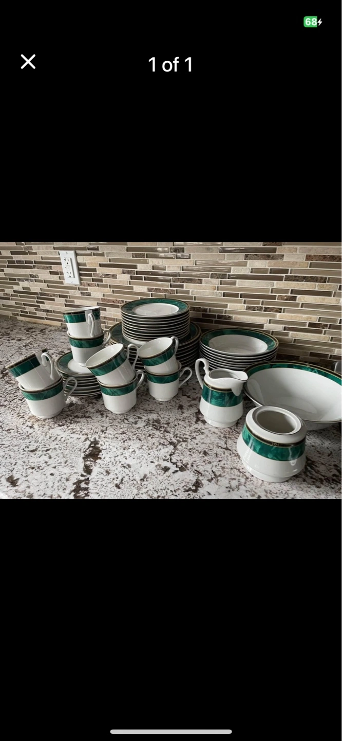 15Selling a beautiful vintage dinnerware set for 8 people . It includes plates, bowls, cups, a creamer, and a sugar bowl plus serving oval plate (not on the picture) . Perfect for adding a touch of elegance to your dining experience!