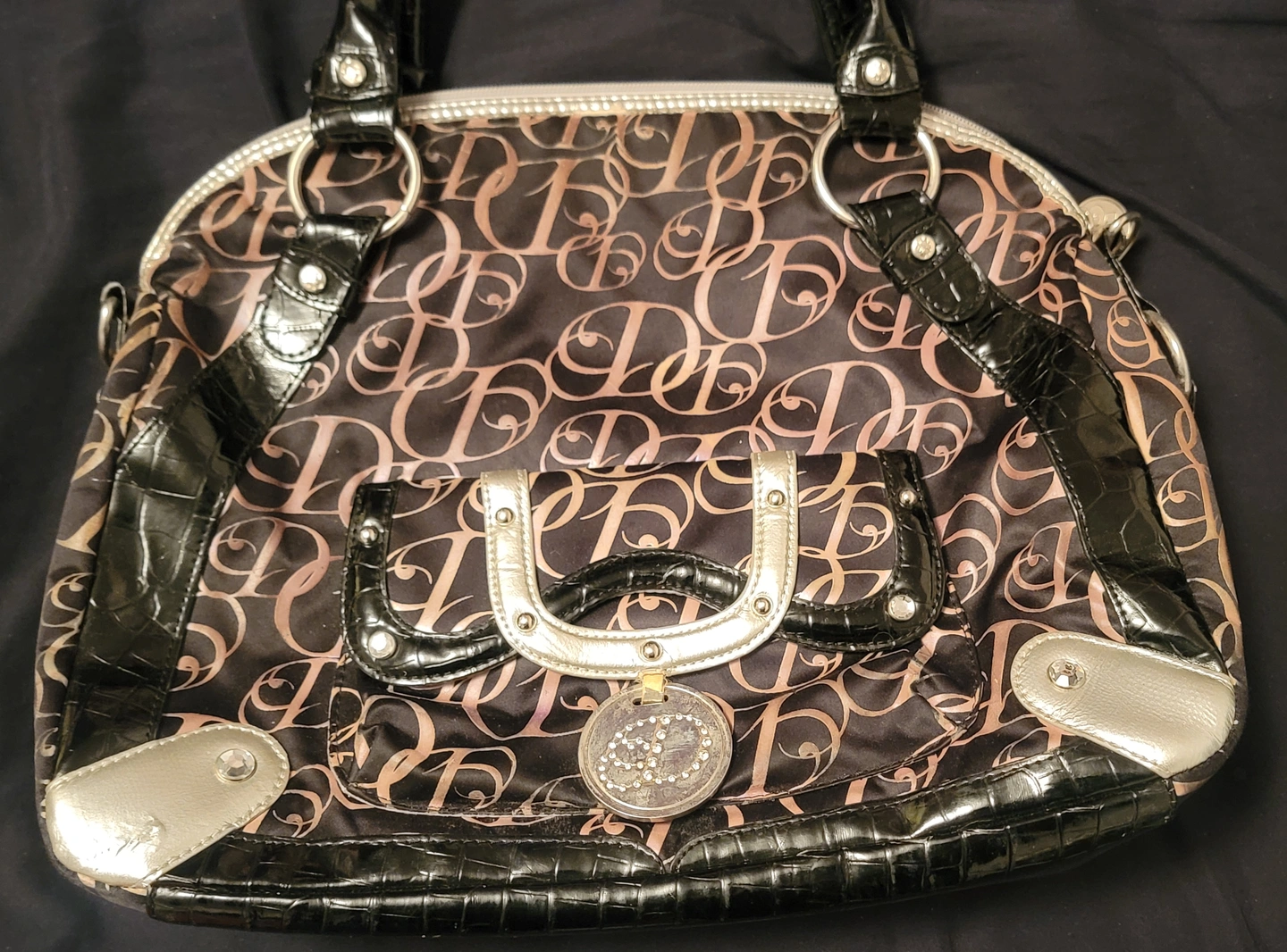 8) Color: Black and Silver Item: Purse Size: Price: $50