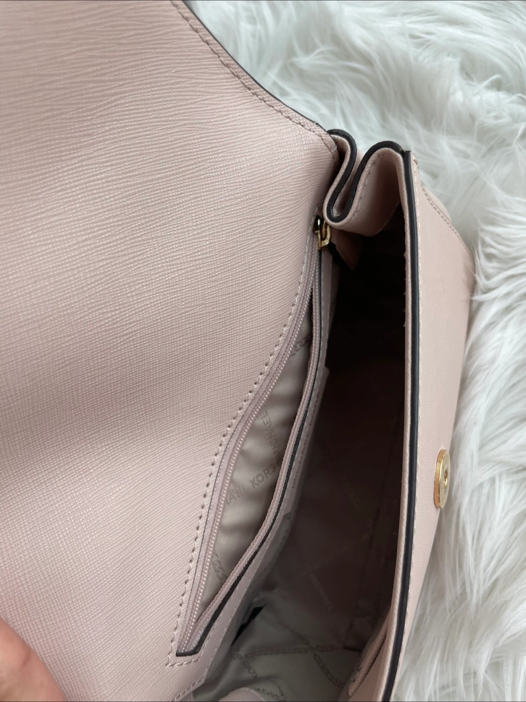 A lovely Michael Kors handbag in a beautiful light pink colour! It's made of leather and is in great condition. Perfect for adding a touch of elegance to any outfit