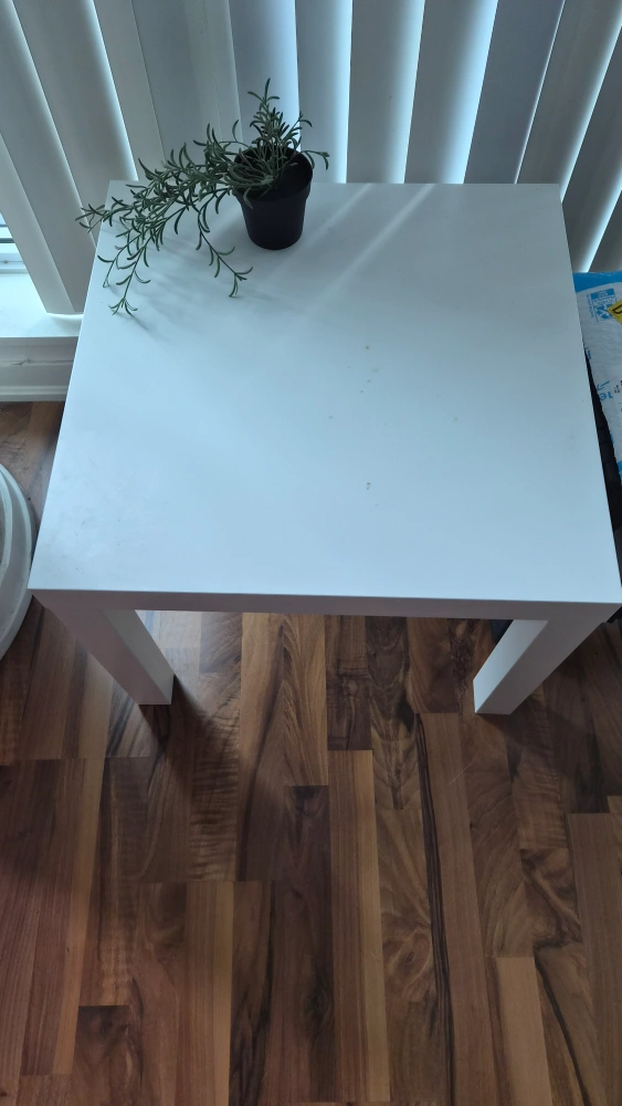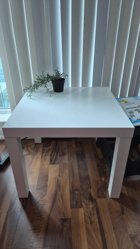 Selling a white IKEA LACK side table! It's perfect as a small coffee table or a nightstand. Simple, clean design that fits into any room. Lightweight and easy to move around
