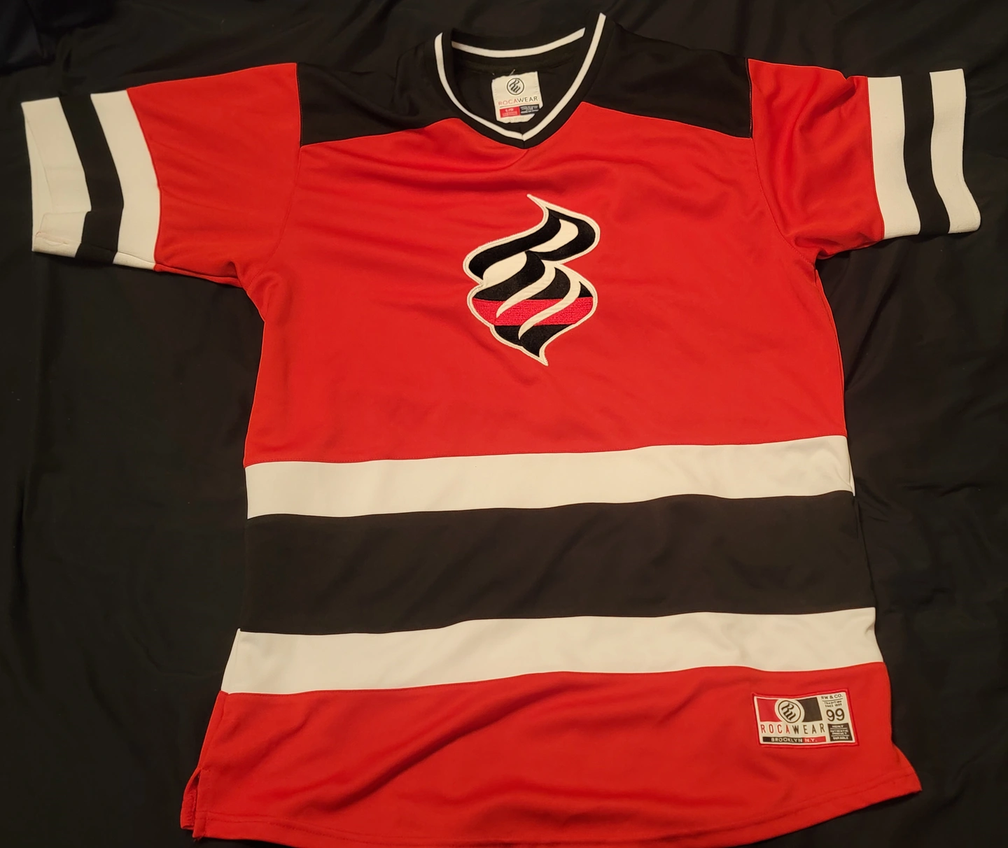 5) Color: Red and Black Item: Jersey 99 Size: Large Price: $80