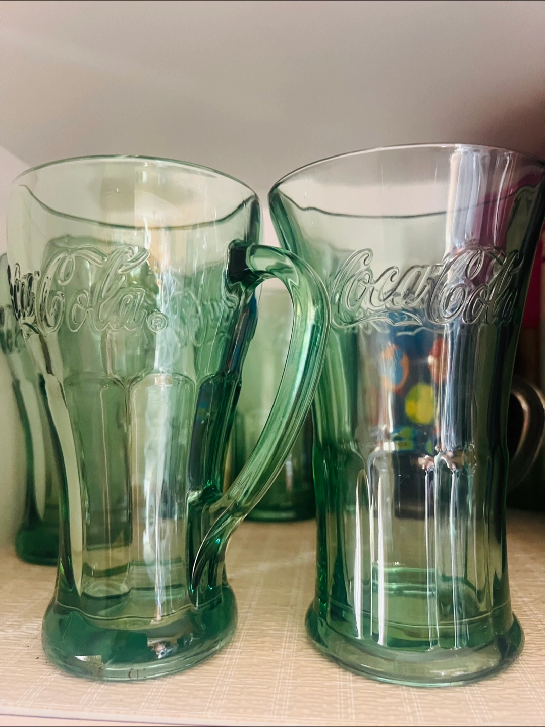 Giving away a set of green Coca-Cola glass mugs! These are in great condition and perfect for adding a touch of retro style to your kitchen or collection