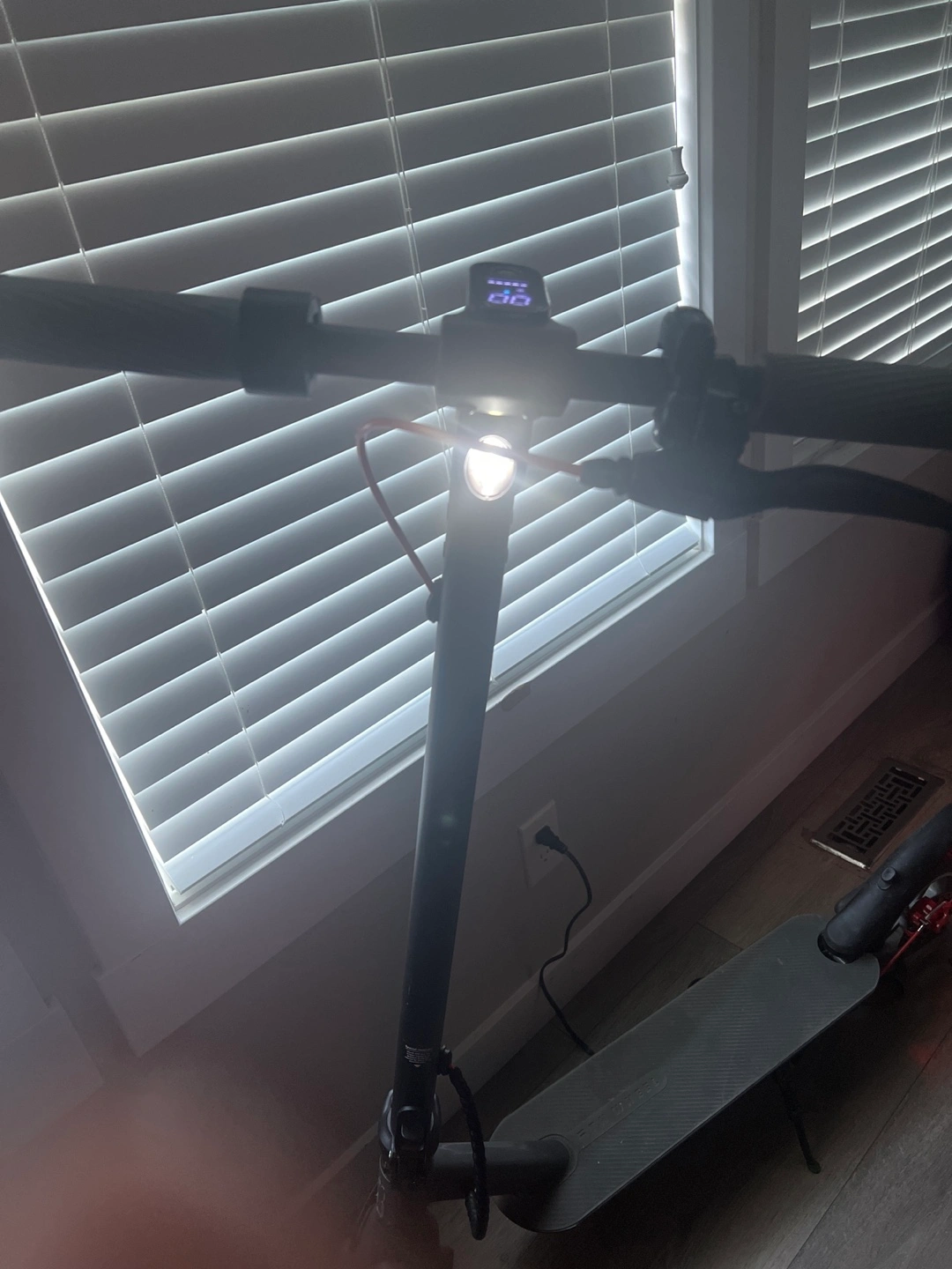 Selling an electric scooter, perfect for getting around town! It features a digital display showing speed and battery level. The scooter also has different modes, including 4 mode . It looks like it's in good condition and ready for a new owner
