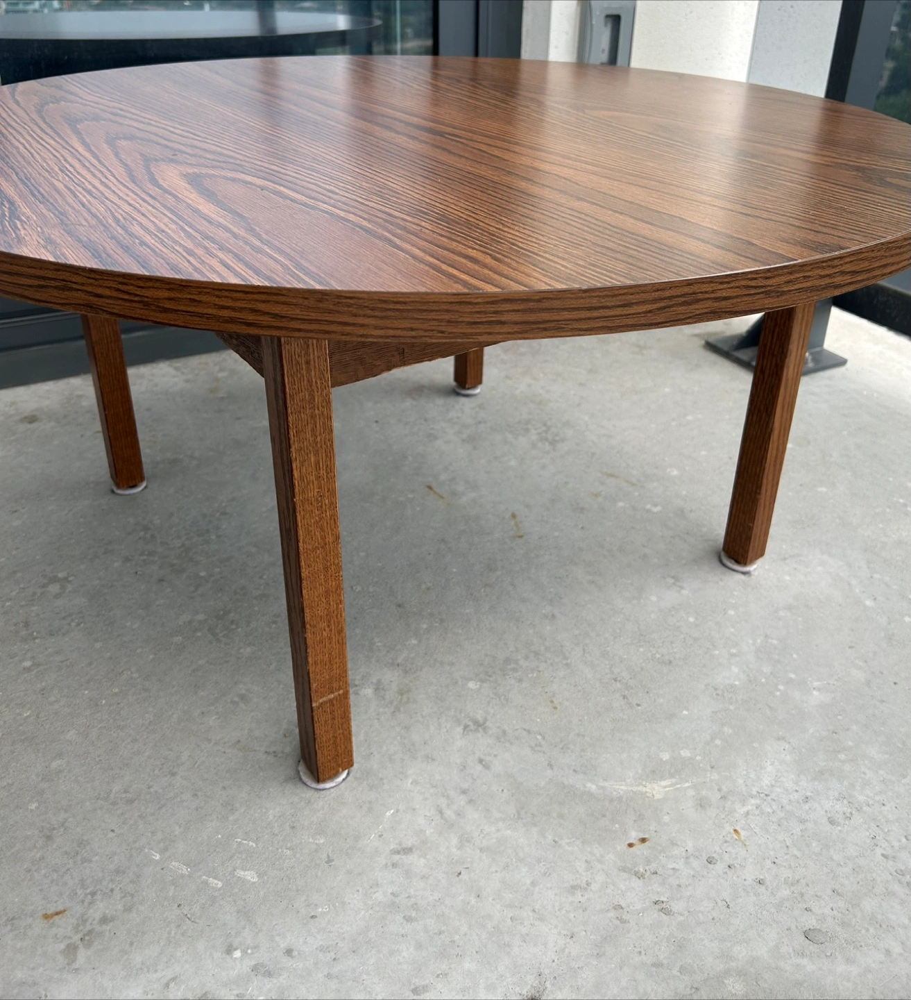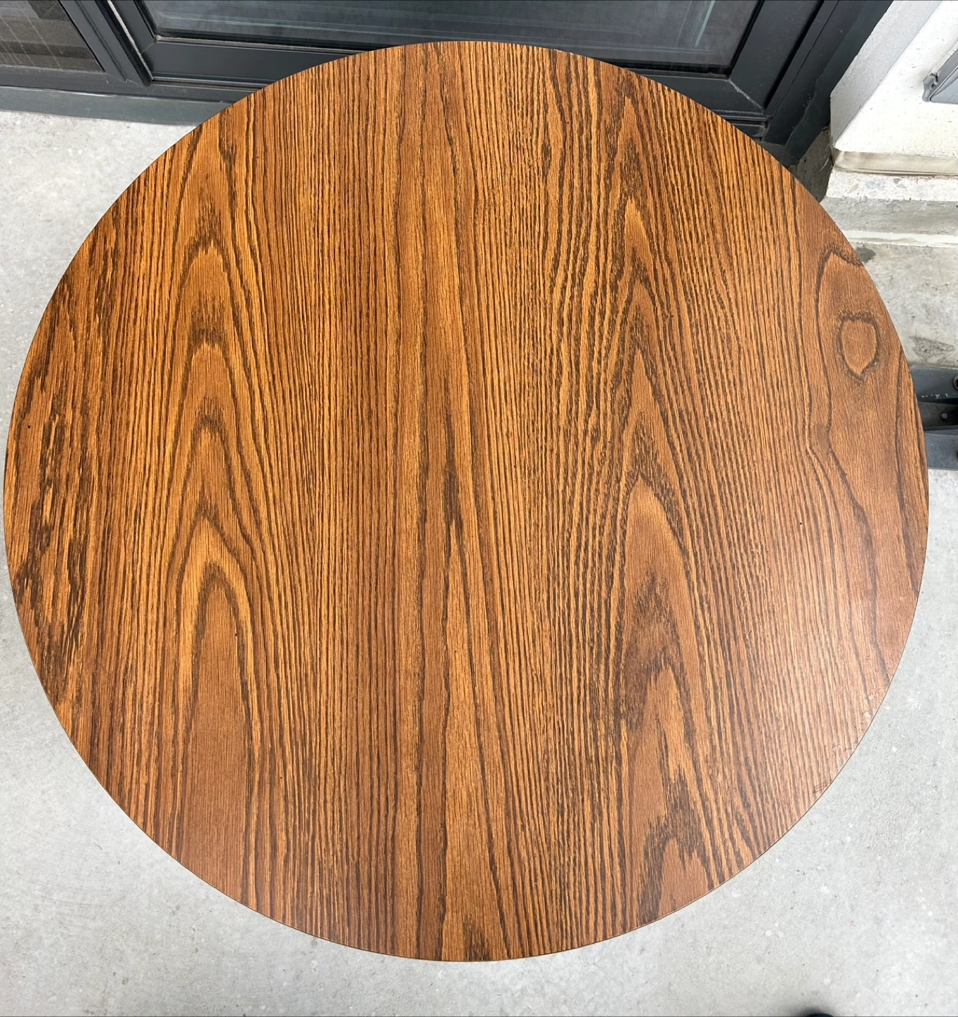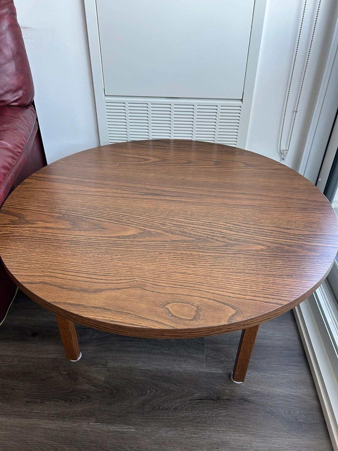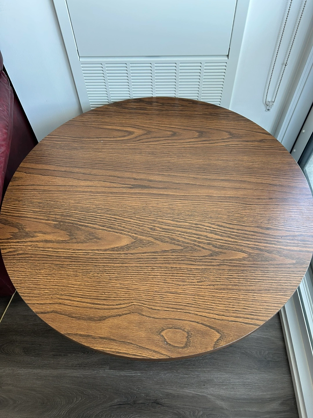 Selling a round wood accent table. It's in great condition and perfect for adding a touch of warmth to any room! The table has a lovely wood grain pattern and sturdy construction