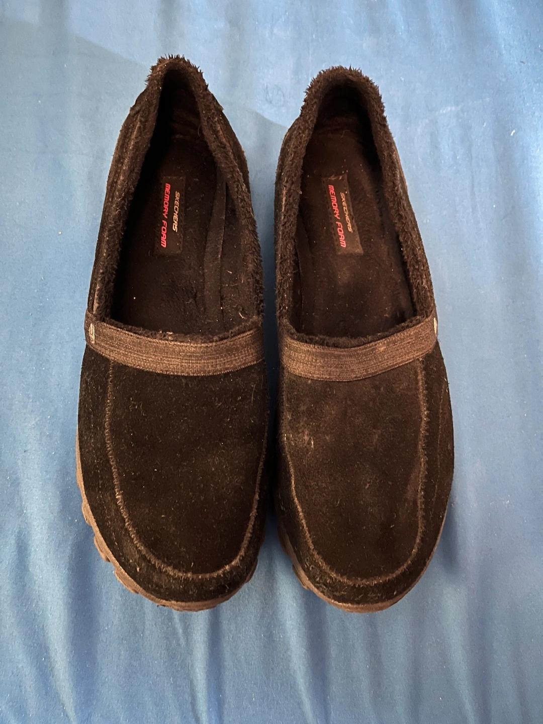 Selling a pair of Skechers lightweight shoes in black. They look like they're in great shape and ready for a new home. Perfect for everyday wear!