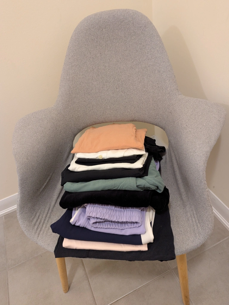 Here's a stack of clothing items! There's a variety of colours and styles in this bundle. Perfect for someone looking to expand their wardrobe with some gently used pieces