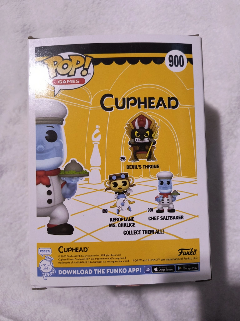 Cuphead Funko Pop Chef Saltbaker comes in box.