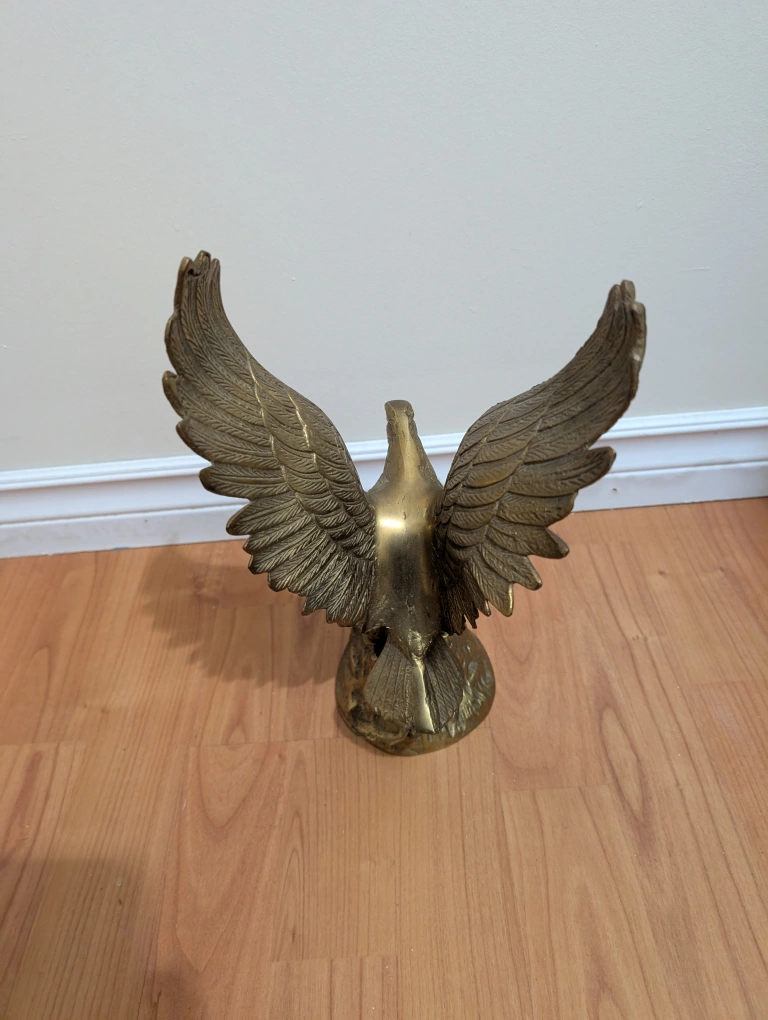 Buy & SellBrass Eagle StatueBrass Eagle Statue$60Selling a lovely brass eagle statue. It's in great shape and would look great in any home! 60 or best offer ConditionLike newWHERE TO MEEThouseView MapSELLERverifiedjohnathonHarvest Hills1084 reviews0 chats·0 favorites·8 viewsSEND CHAT TO SELLERHi johnathon! I’m interested in your listing.Hi johnathon! I’m interested in your listing.Get the Karrot app to chatSign In to chat