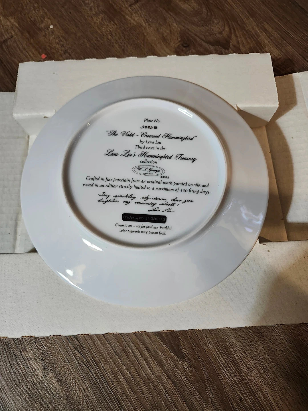 The Violet - Crowned Hummingbird Collector Plate by Lena Liu