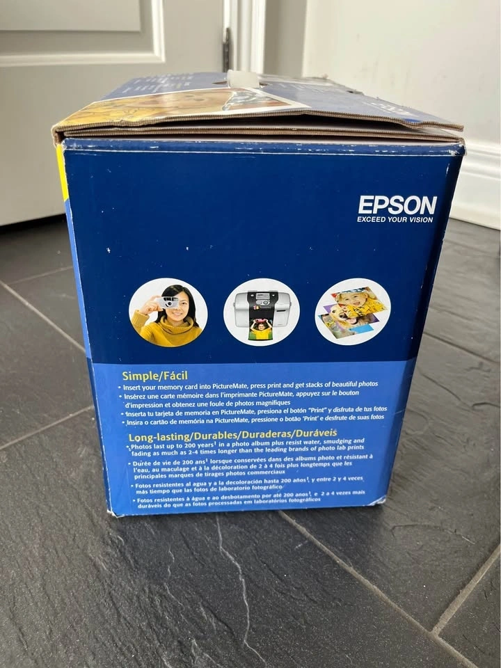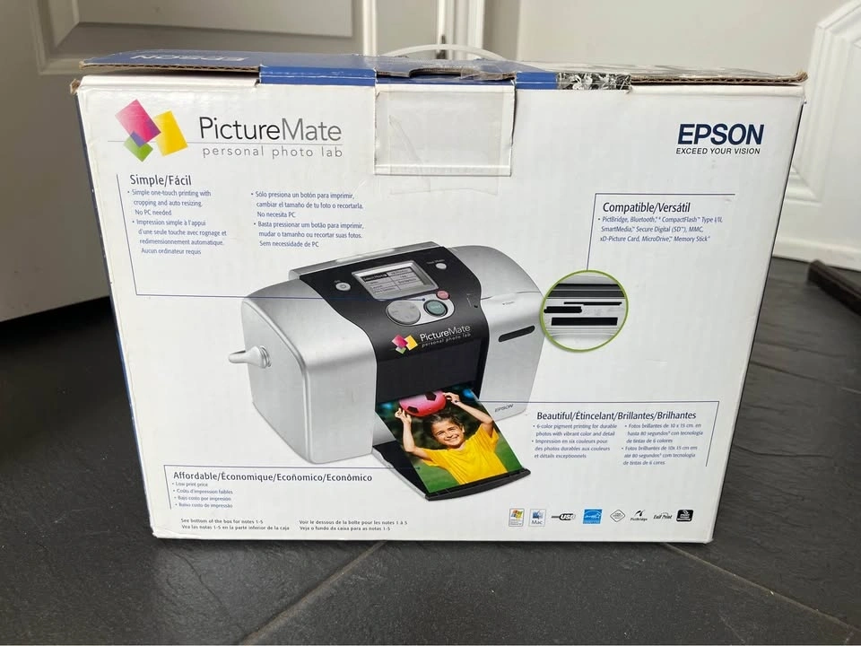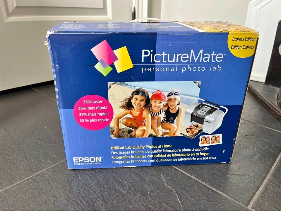 Epson PictureMate Personal Photo Lab – Express Edition. Compact photo printer for lab-quality prints at home. Prints photos quickly and is easy to use. Great for family photos, scrapbooking, and keepsakes. In perfect condition and includes the original box. Pickup near Islington Subway Station.