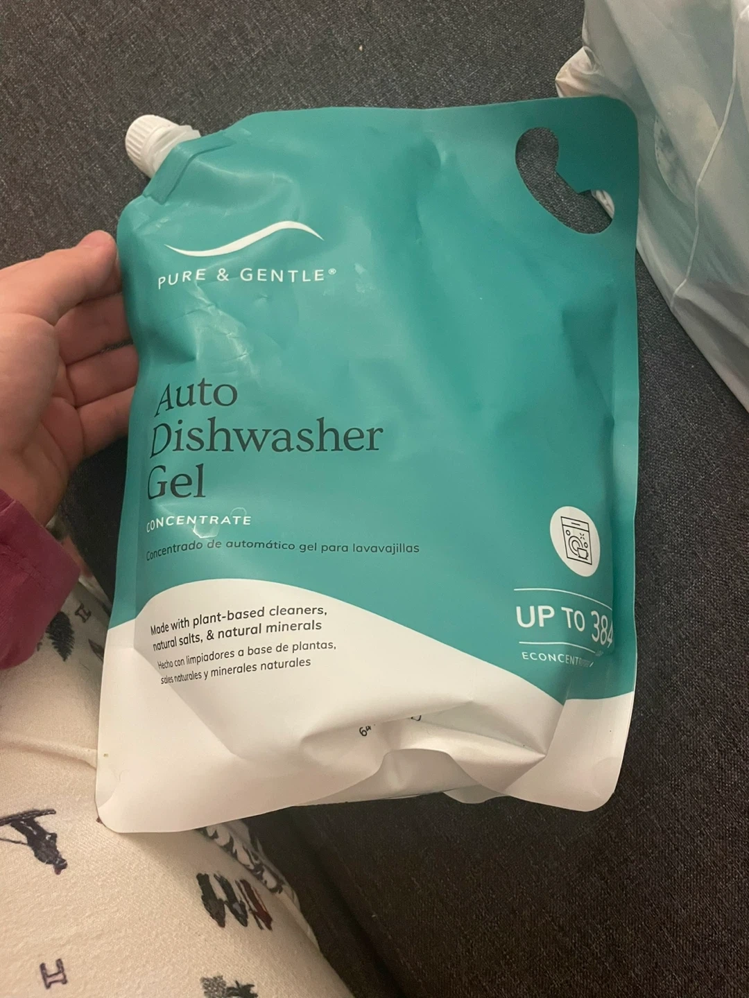 This is a 64oz refill pouch of Pure & Gentle Auto Dishwasher Gel Concentrate. It's made with plant-based cleaners, natural salts, and natural minerals. Up to 384 uses per pouch!