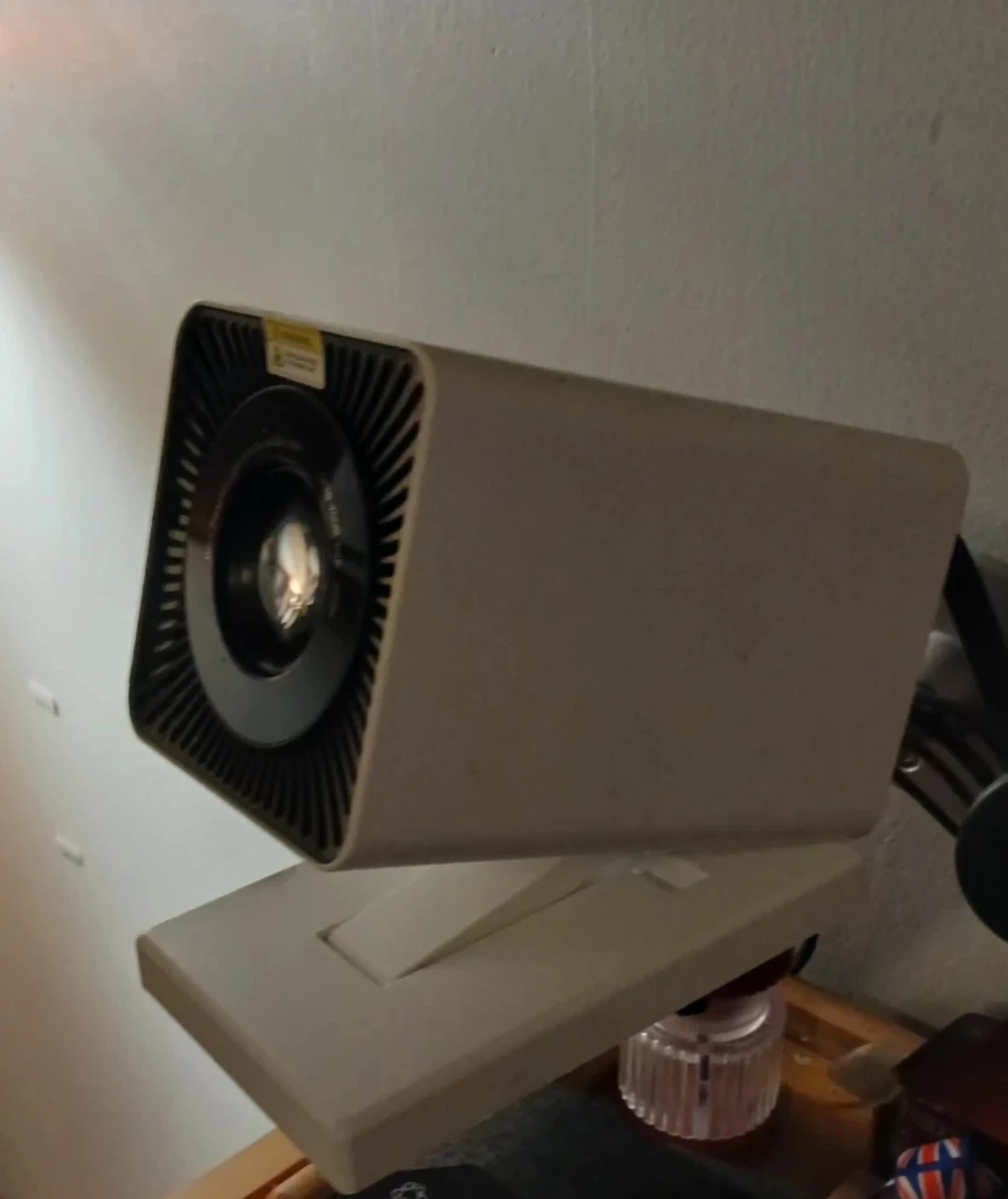 This digital projector features a white casing and a glass lens. It's a great way to display media on a larger screen. Easy to set up for movie nights or presentations! Only used twice i have a white pull down screen to in interested