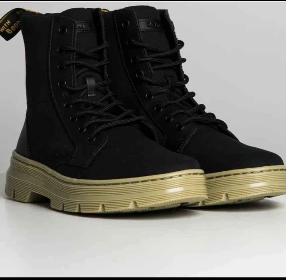 Selling a pair of Dr. Martens boots in black canvas. These are in great condition and ready for a new owner. They're a stylish and durable choice for everyday wear!